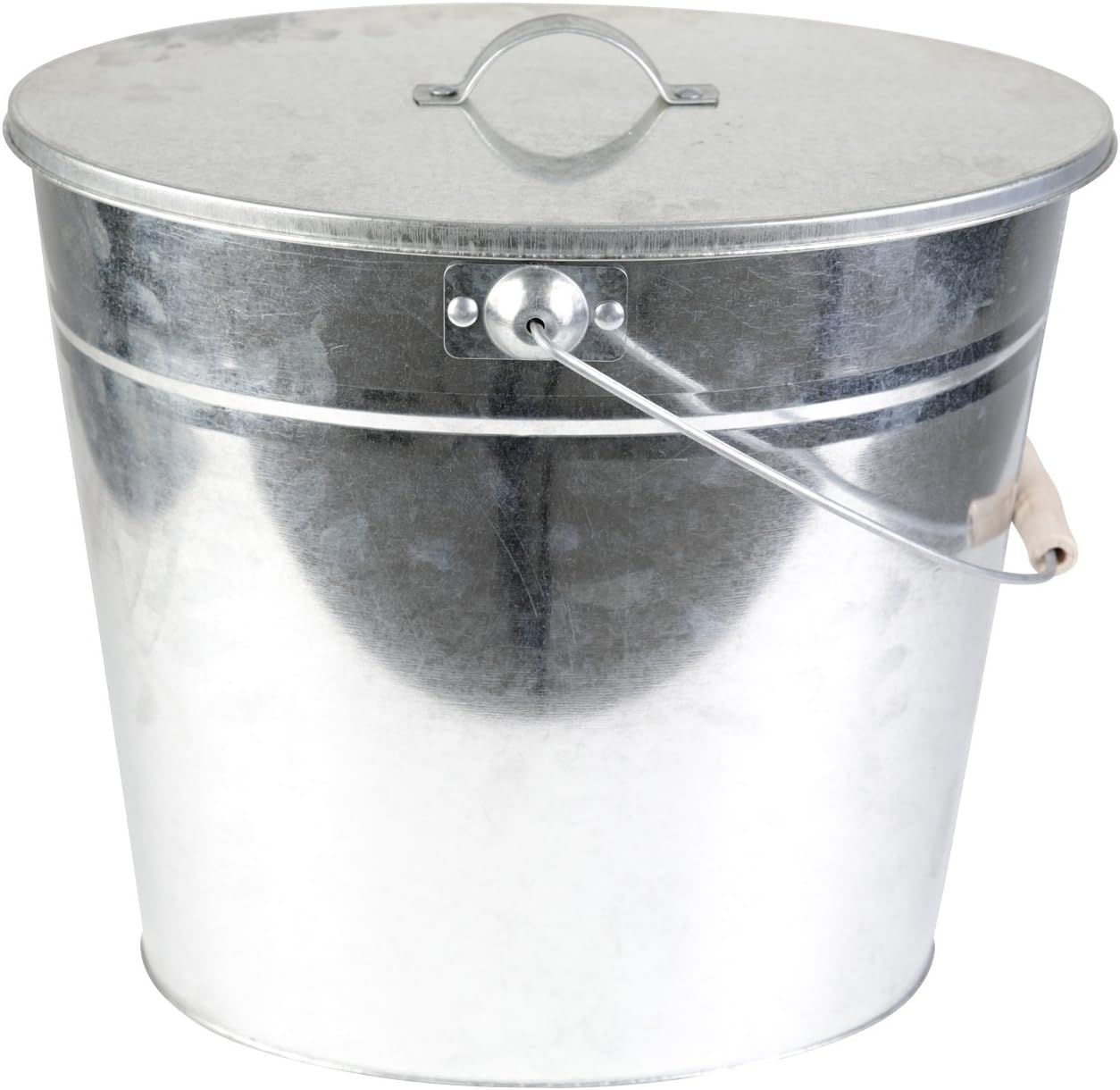 - Kamineimer mit einem Deckel zum Schutz vor Ausbreiten und Verstreuen der Asche - Zinkeimer mit abnehmbarem Henkel für leichten Transport von Kohle und Briketts