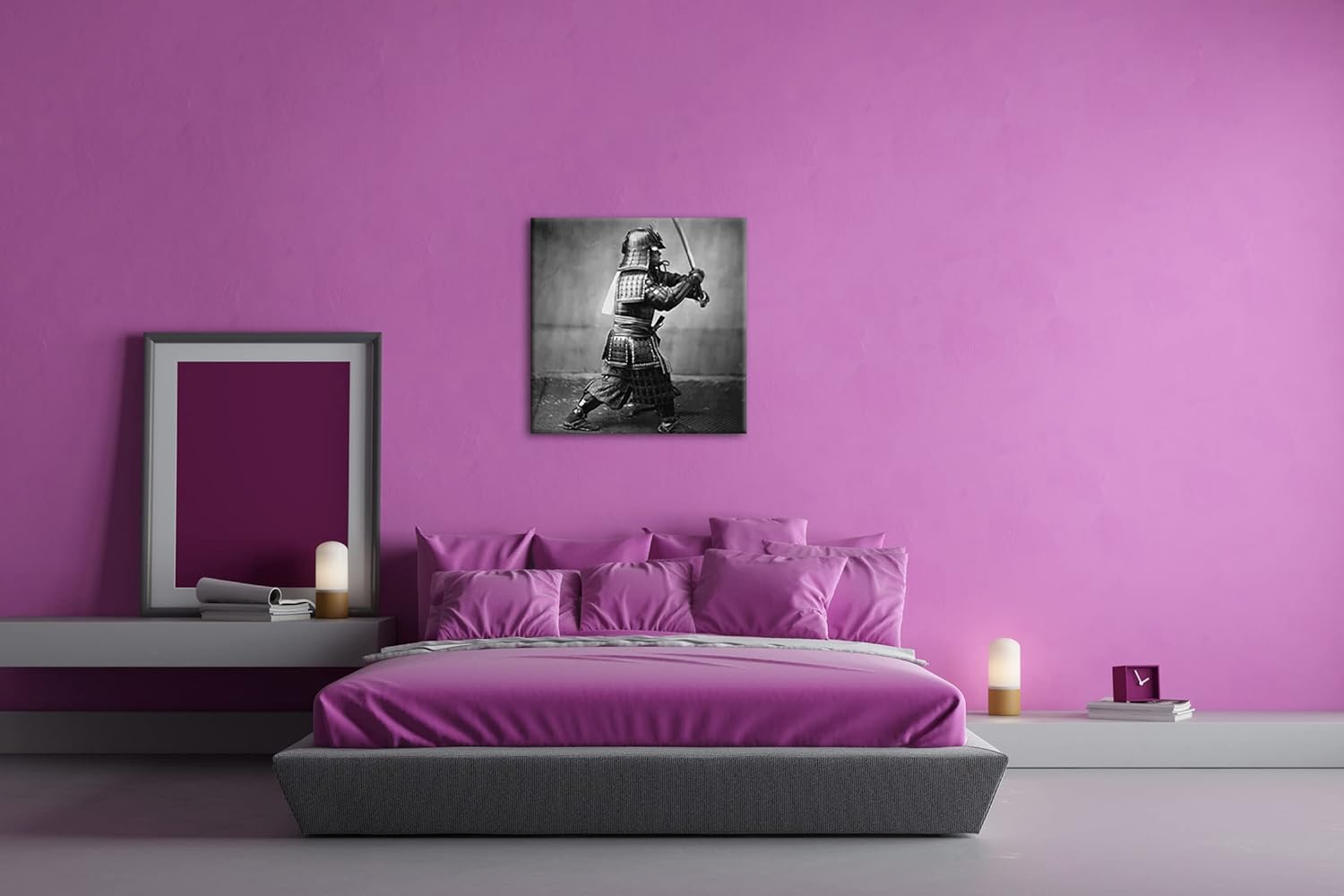 kampfbereiter Samurai-Krieger Format: 60x60 als Leinwandbild, Motiv fertig gerahmt auf Echtholzrahme
