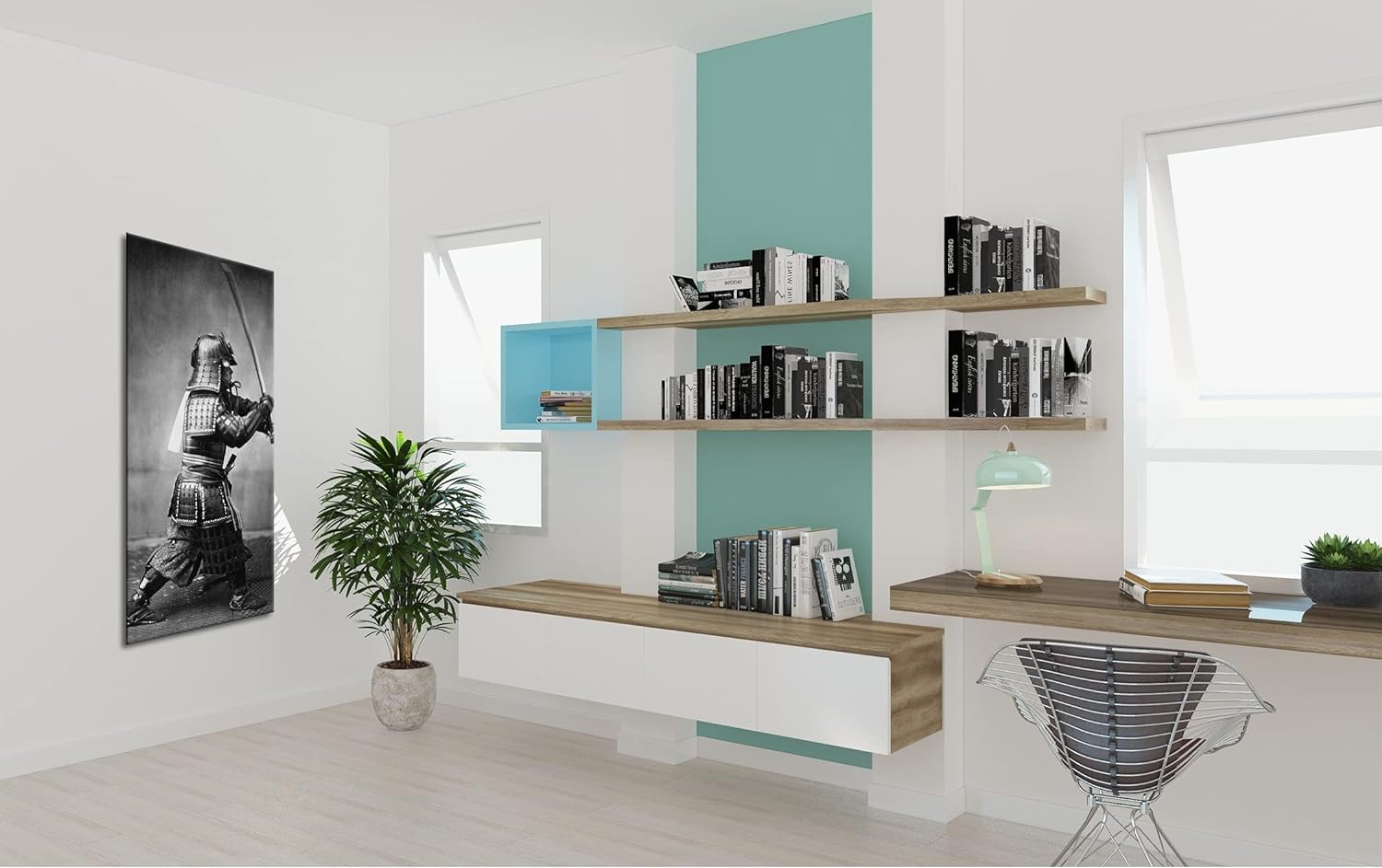 kampfbereiter Samurai-Krieger Panorama 80x40 cm als Leinwandbild, Motiv fertig gerahmt auf Echtholzr