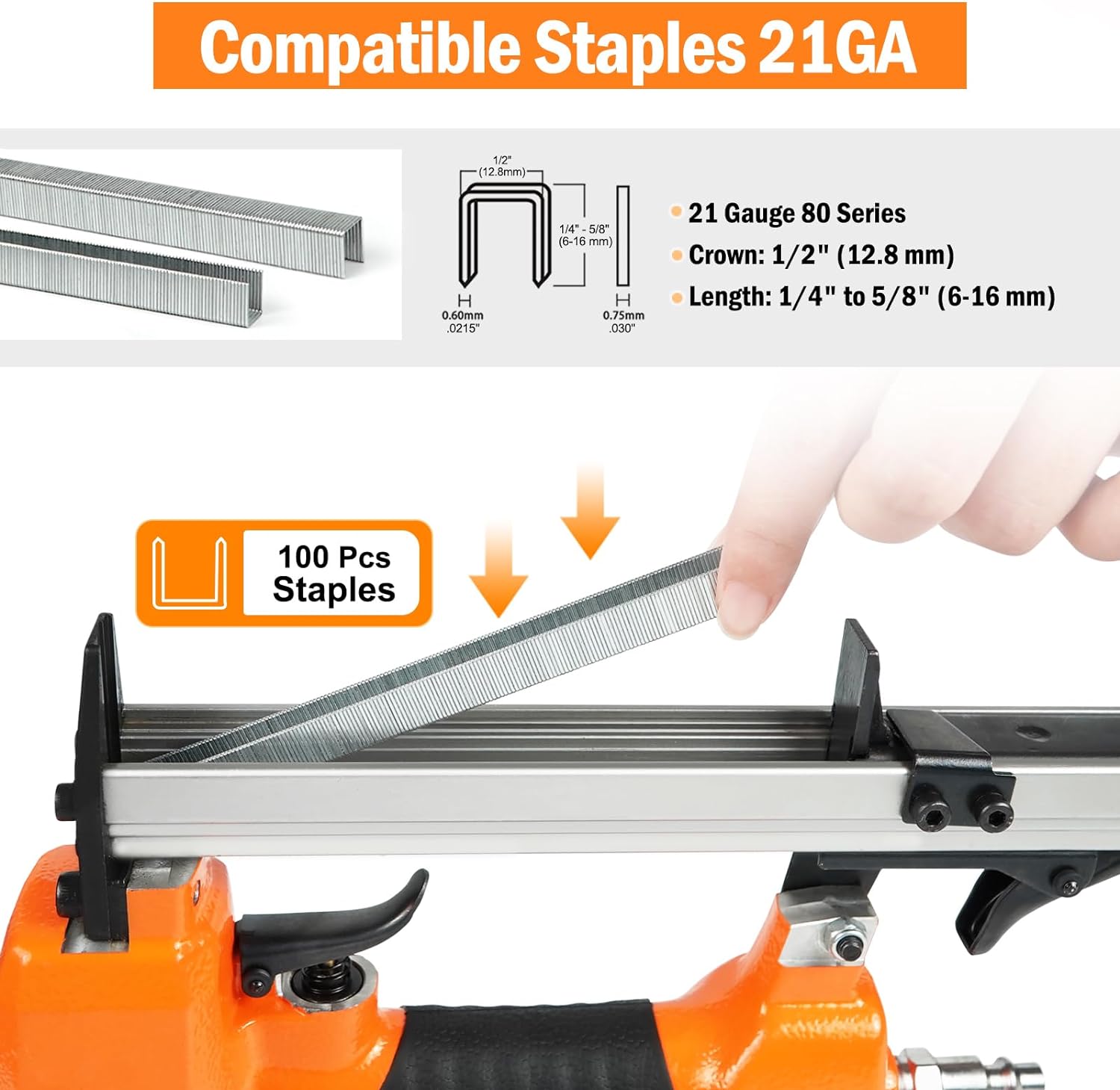 - 【Kompatible Befestigungselemente】 Treibt Heftklammern der Serie 80 mit 21 Gauge an. Klammerkrone: 12,8 mm, Klammerschenkellänge: 6–16 mm **Klammern sind nicht im Lieferumfang dieses Produkts enthalten**