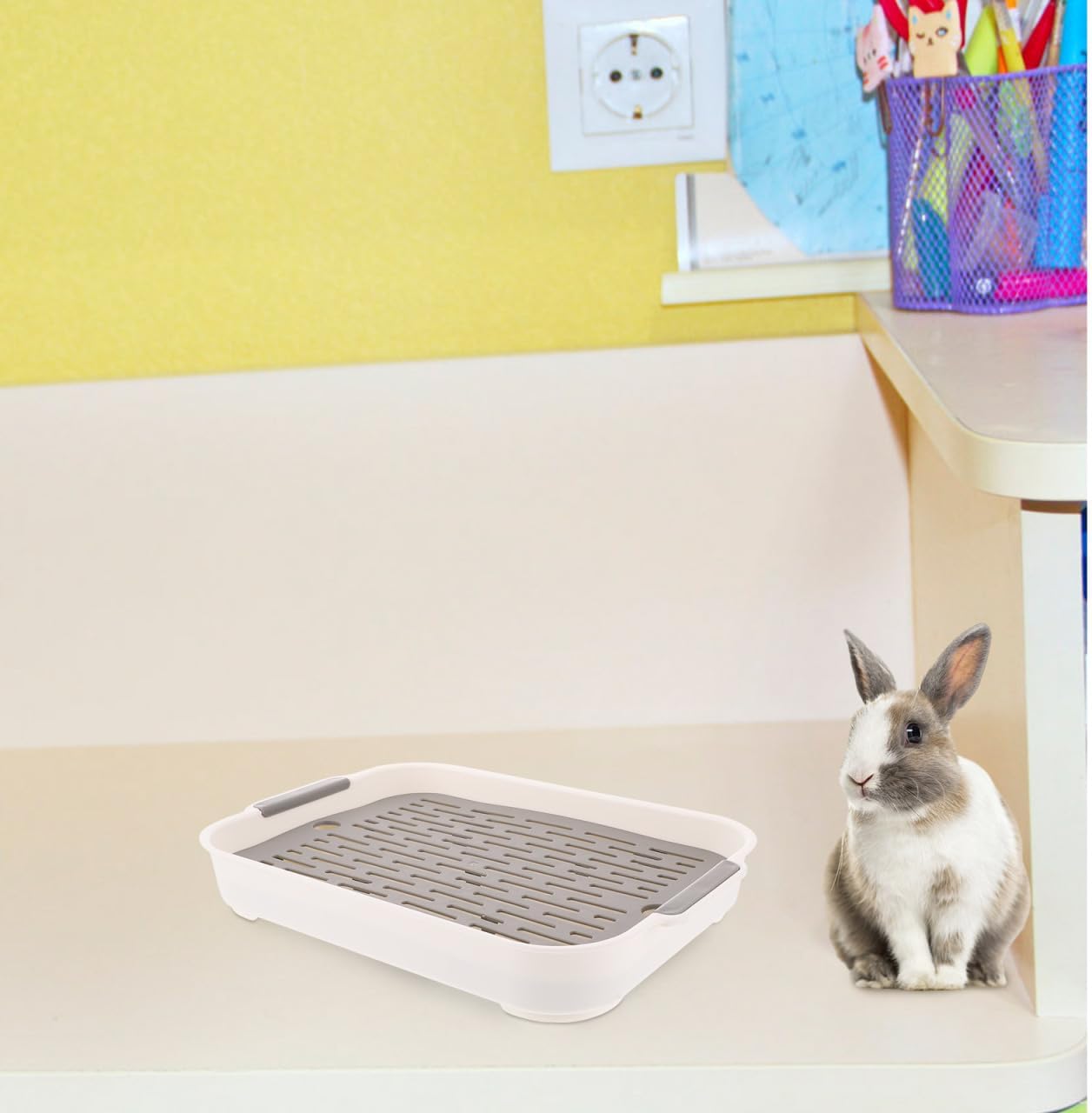 • Gitter in richtigen Grösse: Hasenkäfig-Toilette hat ein geeignetes Gitter, dem Streu in normaler Grösse nicht erlaubt, auf dem Gitter zu bleiben, wodurch Streugeruch reduziert wird.