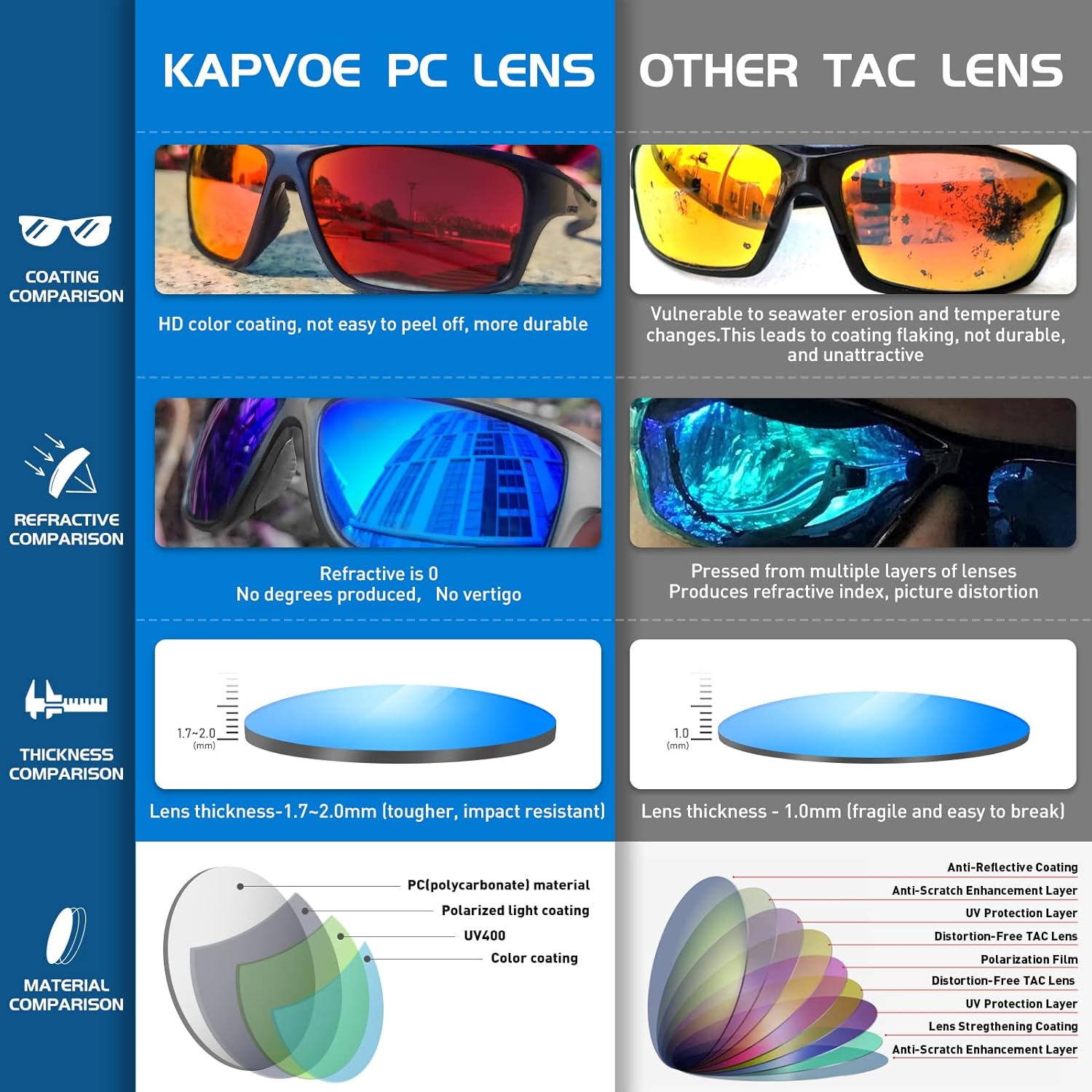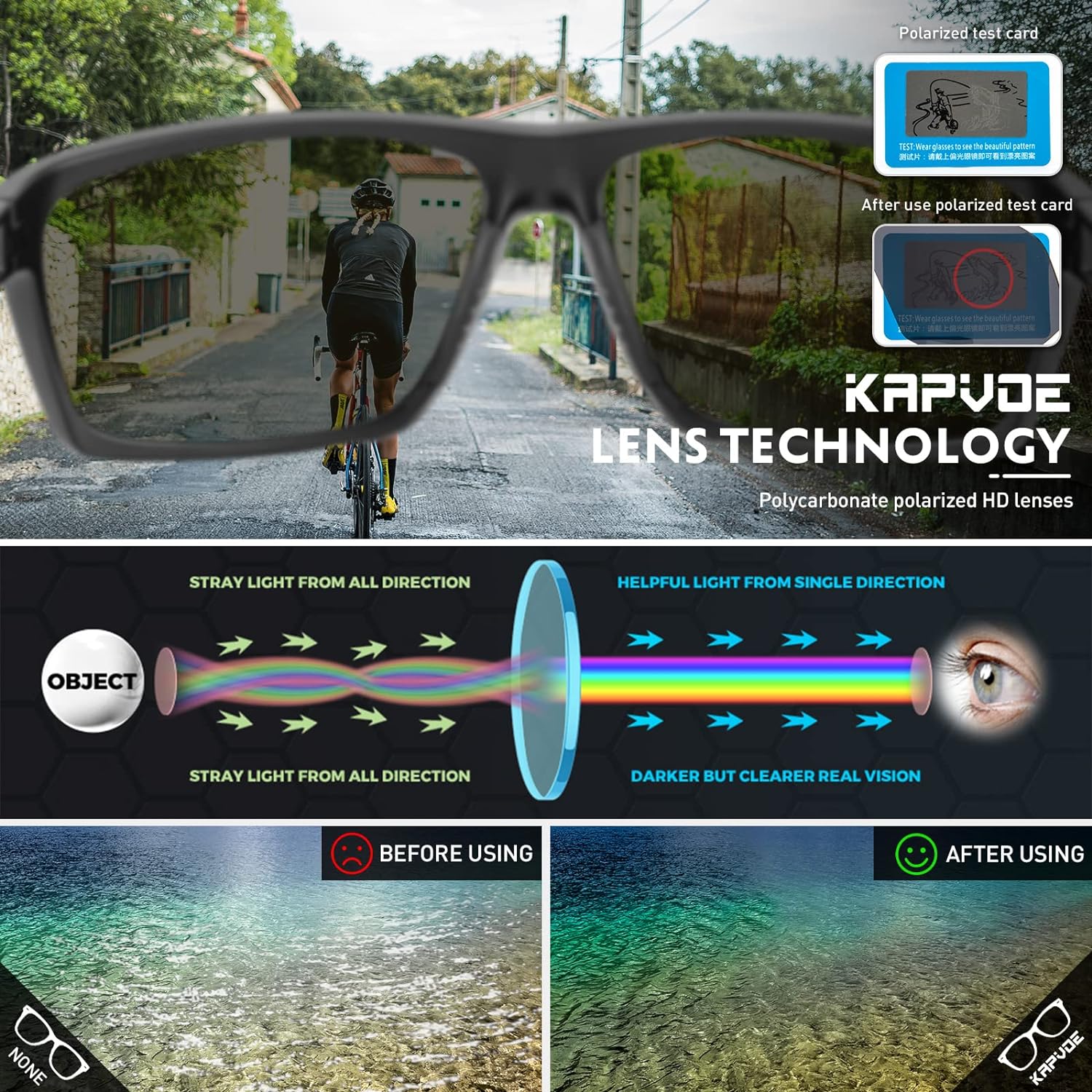 - 【1,7 mm-2,0 mm PC-Gläser】 Im Gegensatz zu herkömmlichen TAC-Sportsonnenbrillen gibt es fast keine optische Verzerrung und verursacht keine Augenbelastung und Kopfschmerzen, wenn Sie eine Polarisierende KAPVOE-Sportbrille tragen. Unsere Objektive