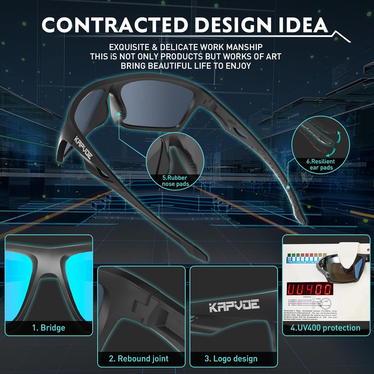 - 【UV400-Schutzgläser】 KAPVOE-Sportsonnenbrillen können schädliche UVA- und UVB-Strahlen effektiv blockieren und schädliches blaues Licht bis zu 400 nm filtern. Beseitigen Sie reflektiertes Licht und Streulicht, stellen Sie die wahre Farbe wieder