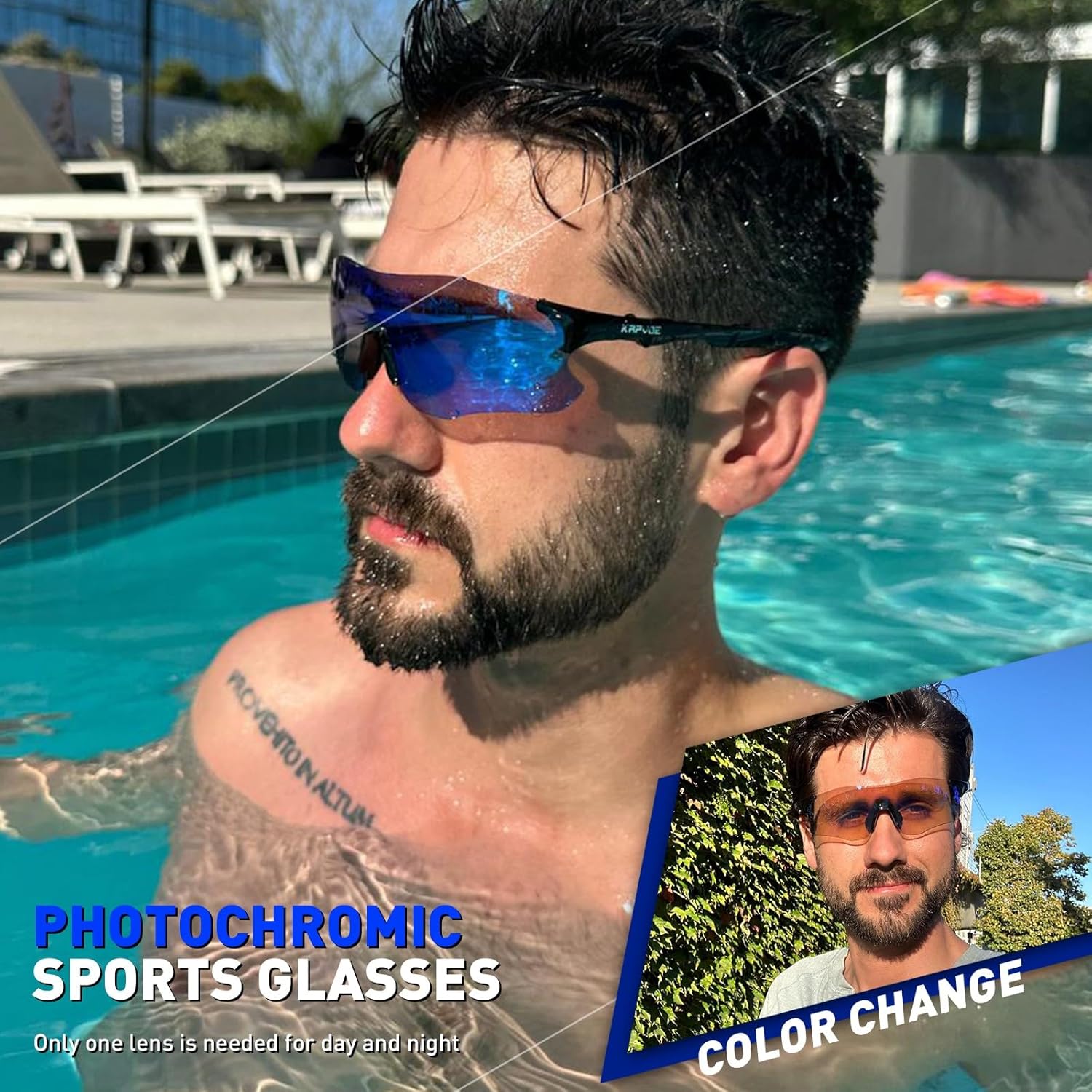 - 【MULTIFUNKTIONALE ANLÄSSE】 Diese sportsonnenbrillen selbsttönend eignet sich perfekt zum fahrradbrille, baseball, MTB, rennrad, radfahren, BMX, mrotorradfahren, fahren, skifahren, , bergsteigen, angeln, golfspielen, wandern, bootfahren und andere