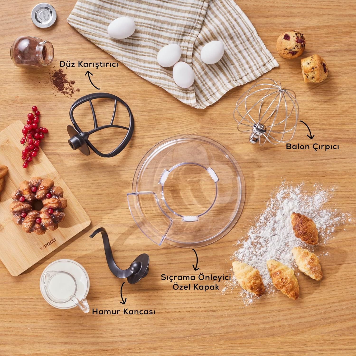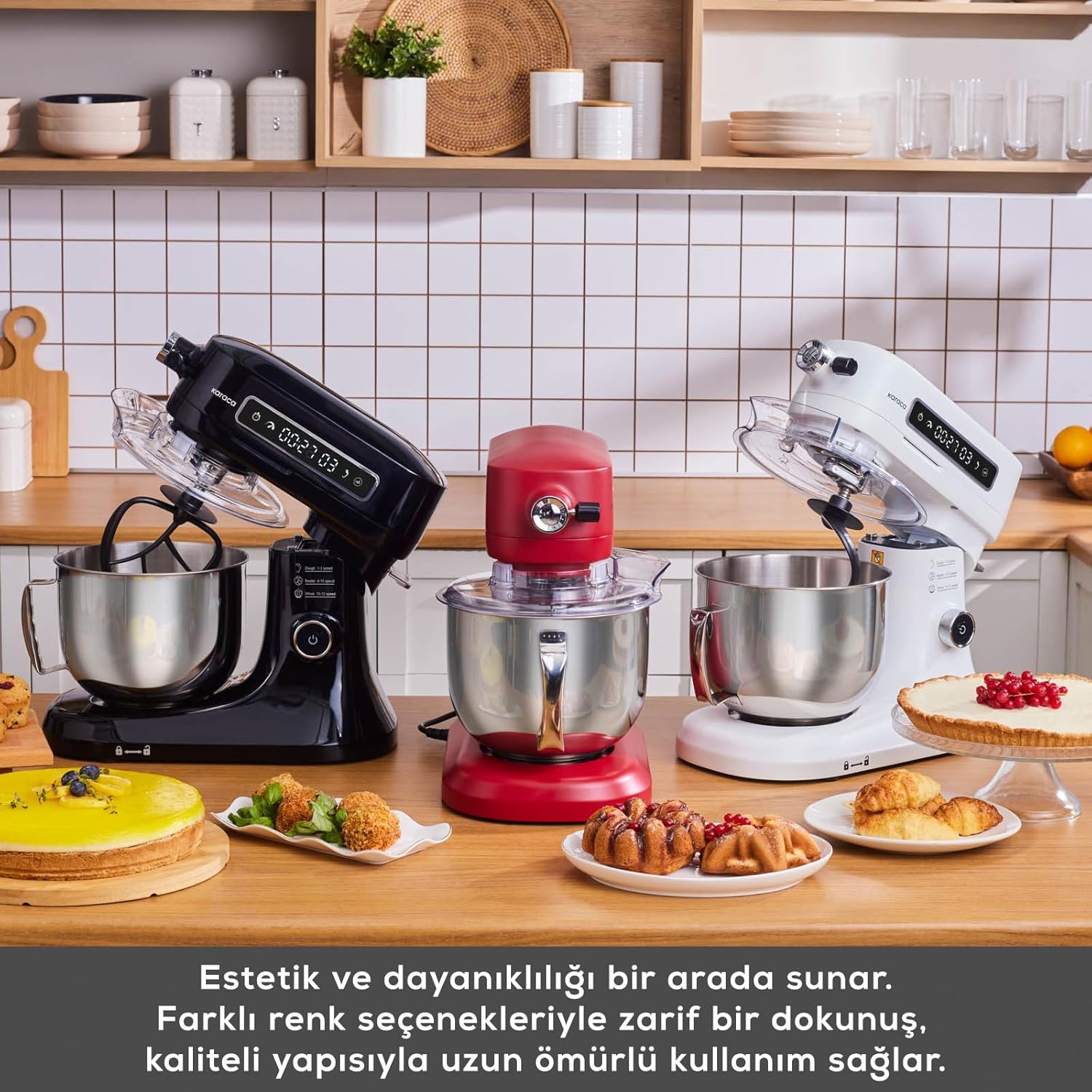 - Leistungsstarker 1600W-Motor: Für müheloses Kneten, Rühren und Schlagen – auch bei schweren Teigen und grossen Mengen.