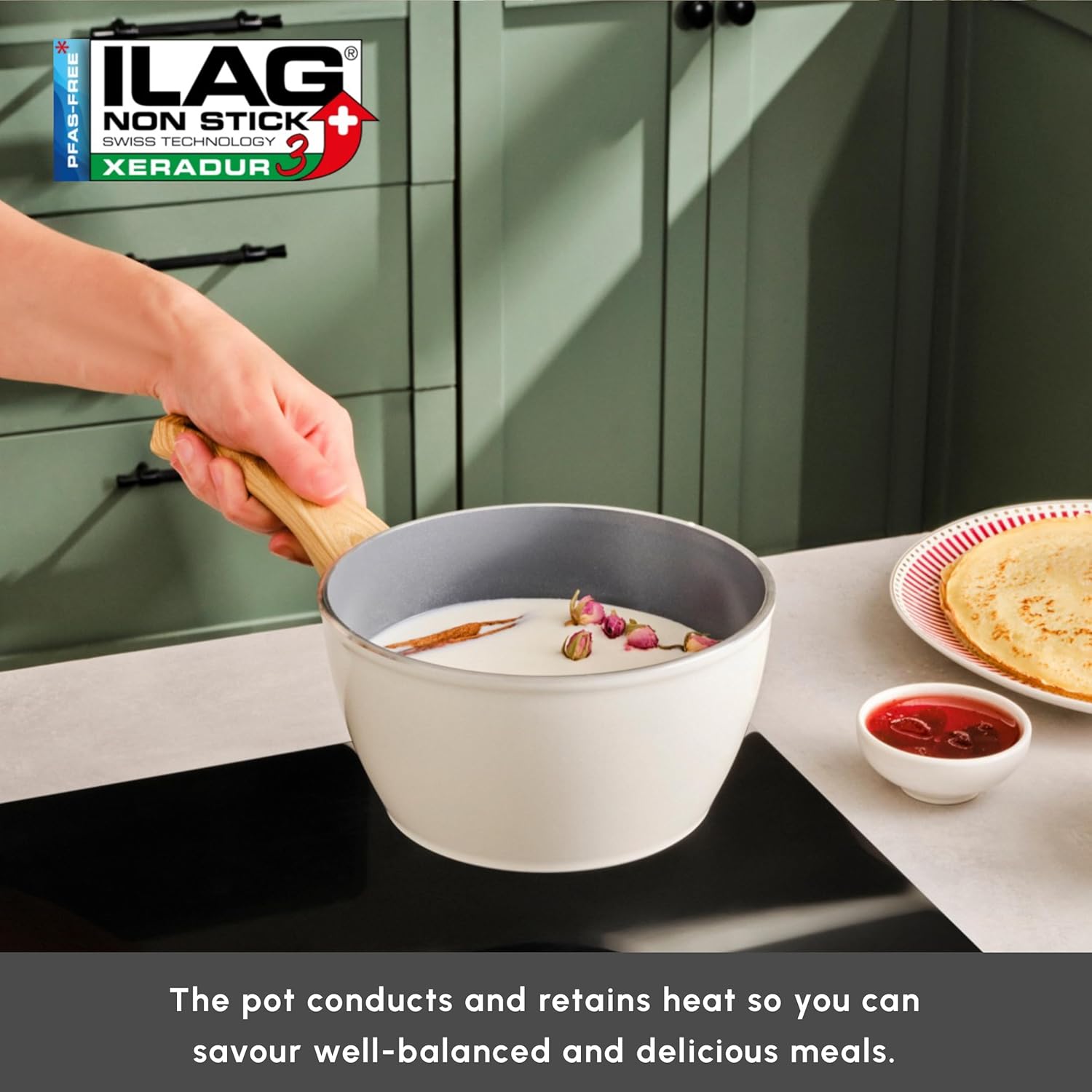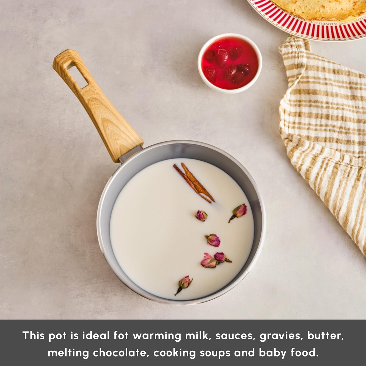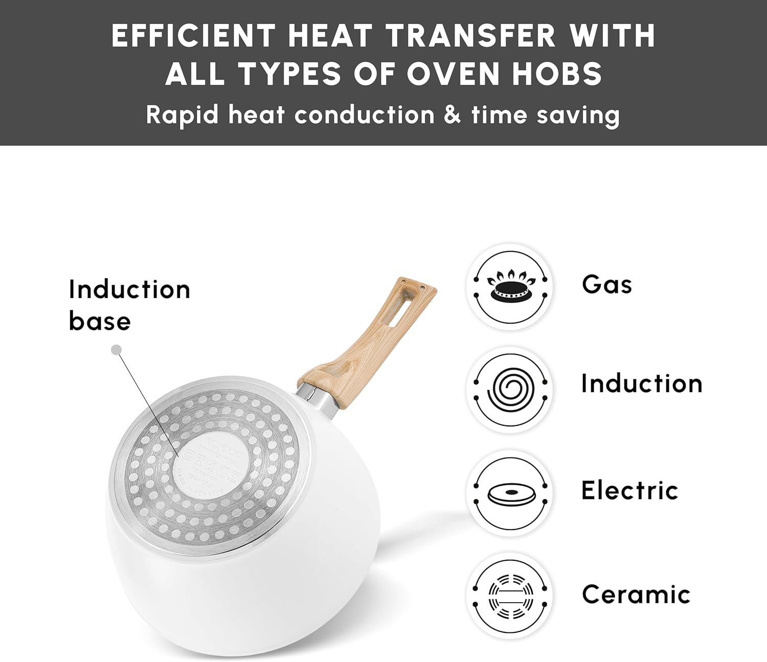 - 18 cm. Vielseitige Grösse: Der Durchmesser von 18 cm ist ideal für die Zubereitung von Saucen, das Erhitzen von Suppen und die Zubereitung kleiner Portionen, was ihn zu einer vielseitigen Ergänzung für jede Küche macht.