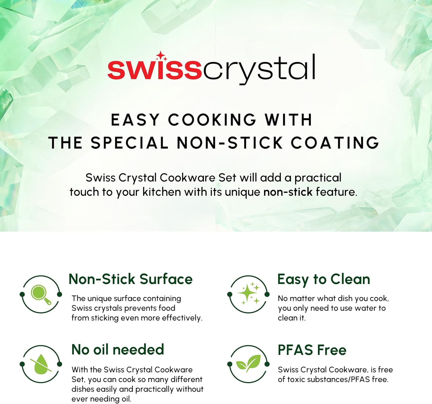 - Schweizer Kristall-Antihaft-Technologie: Der KARACA Swiss Crystal-Induktions-Kochtopf verfügt über eine fortschrittliche Antihaft-Technologie, die mühelose Freigabe von Lebensmitteln, einfache Reinigung und gesünderes Kochen mit minimalem Öl bietet.