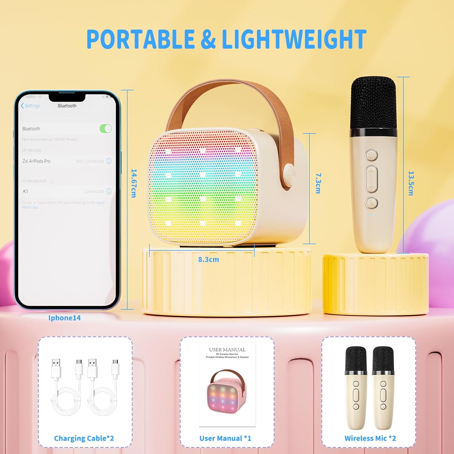 - 【Geeignet für Kinder】Karaoke maschine kinder wiegt nur etwa 450g, Grösse: 7.3cm*8.3cm, leicht und tragbar, Kinder können es leicht aufheben, und es wurde durch über 10.000 Mal Falltest getestet, um Haltbarkeit zu gewährleisten. Party,