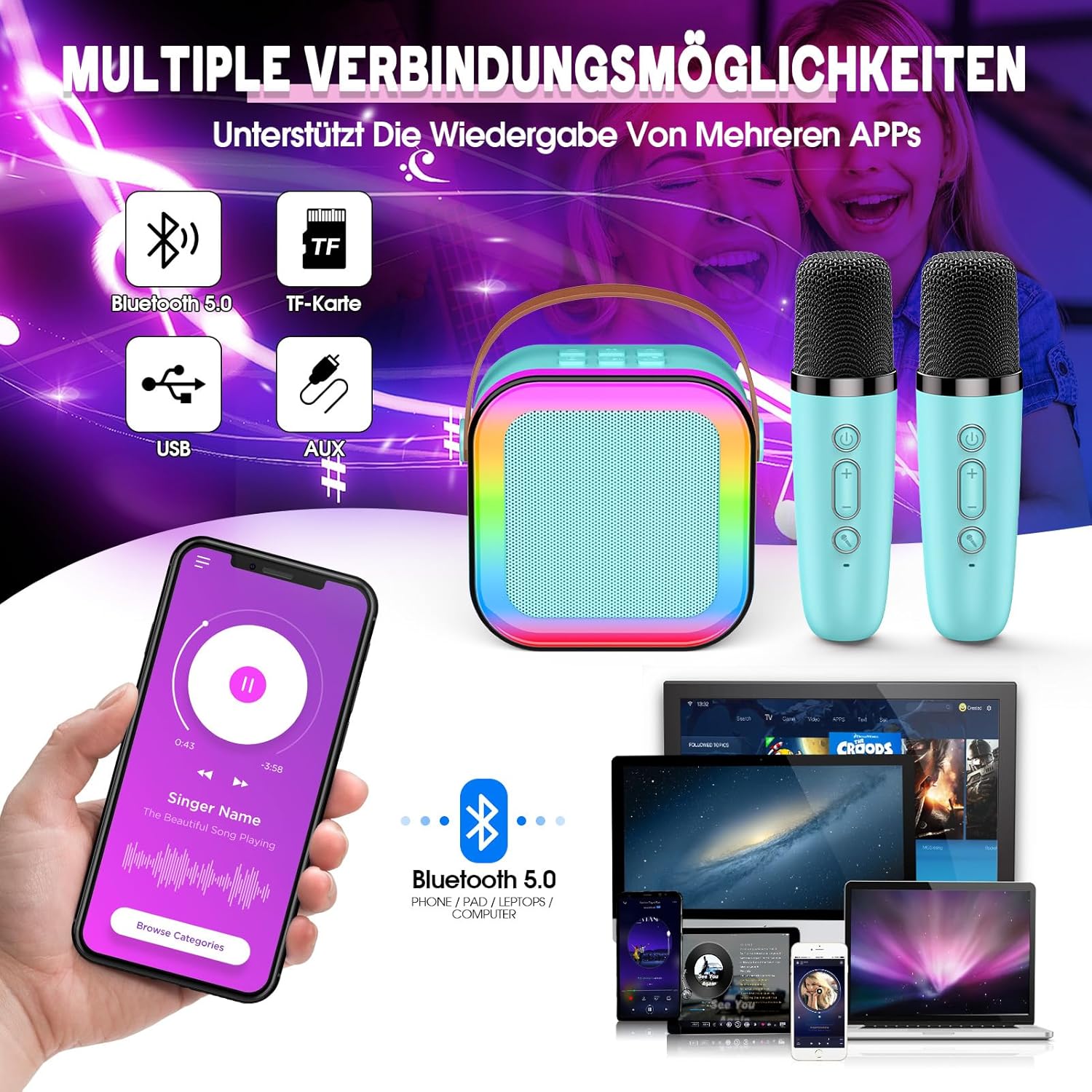 - 【Coole Lichter】Unser Karaoke-Set hat coole Lichter, die Ihren Kindern grossen visuellen Genuss zusammen mit toller Musik bieten. Die Lichter enthalten nicht nur mehrere Farben, sondern haben auch verschiedene dynamische Effekte, die es eine gute Wahl