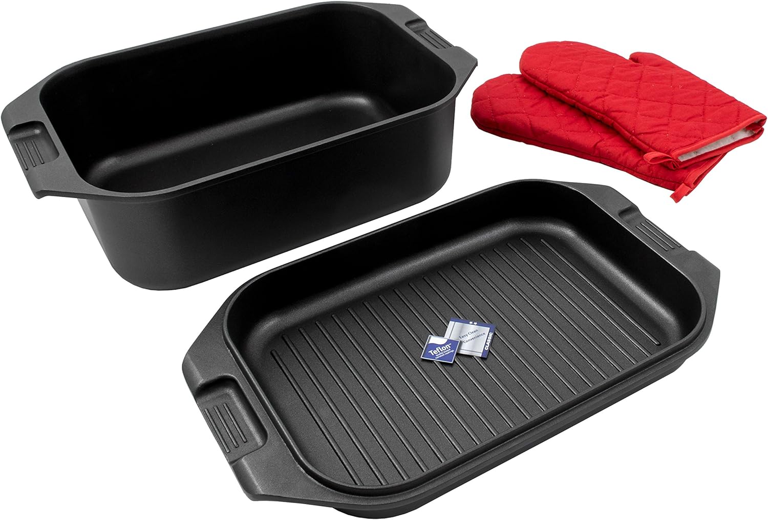 - Eigenschaften: Aluguss Bräter mit 5,5 mm Bodenstärke, 2,5 mm Wandstärke, backofenfest bis 260°C, geeignet für Elektro-, Keramik- und Gasherd, spülmaschinengeeignet