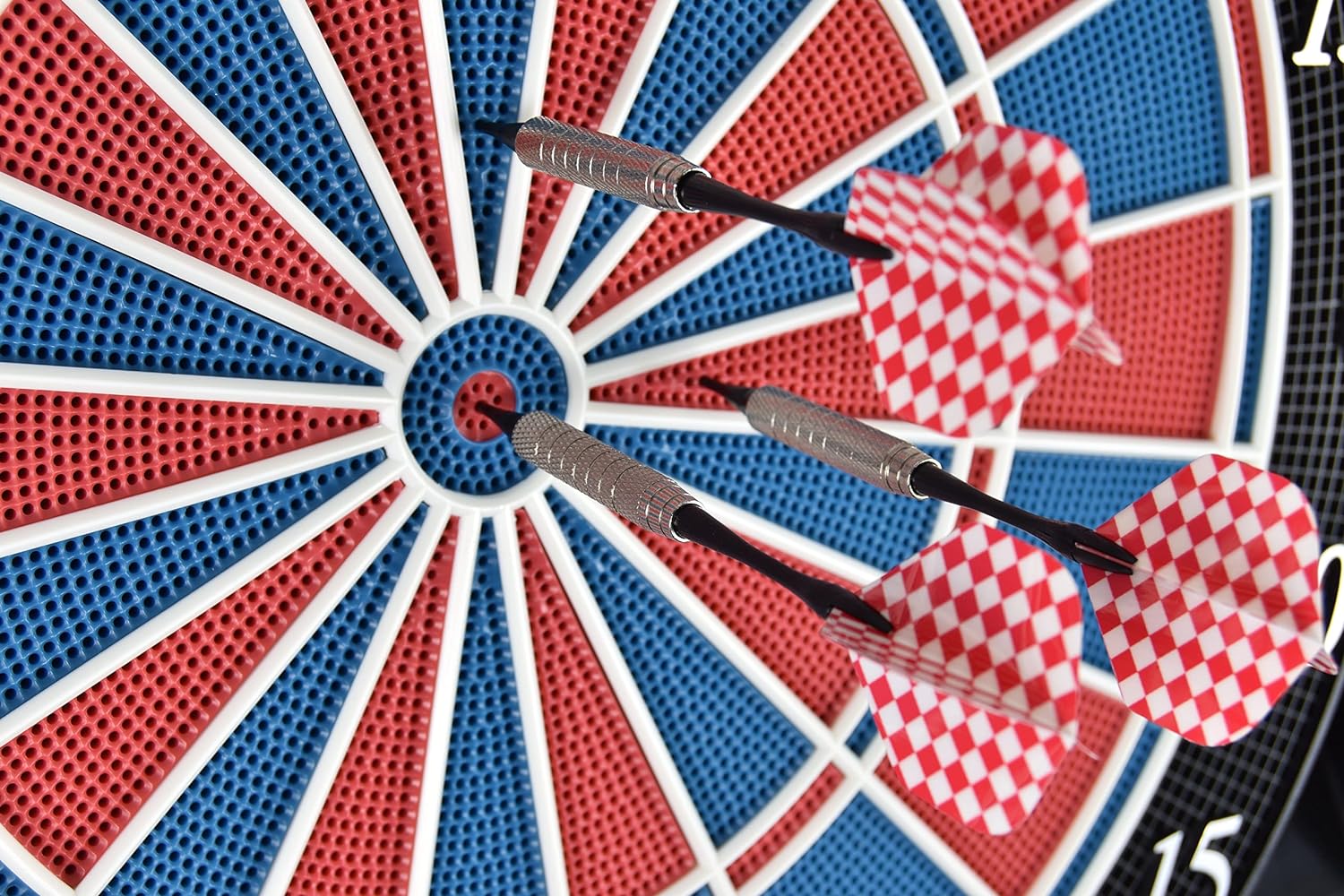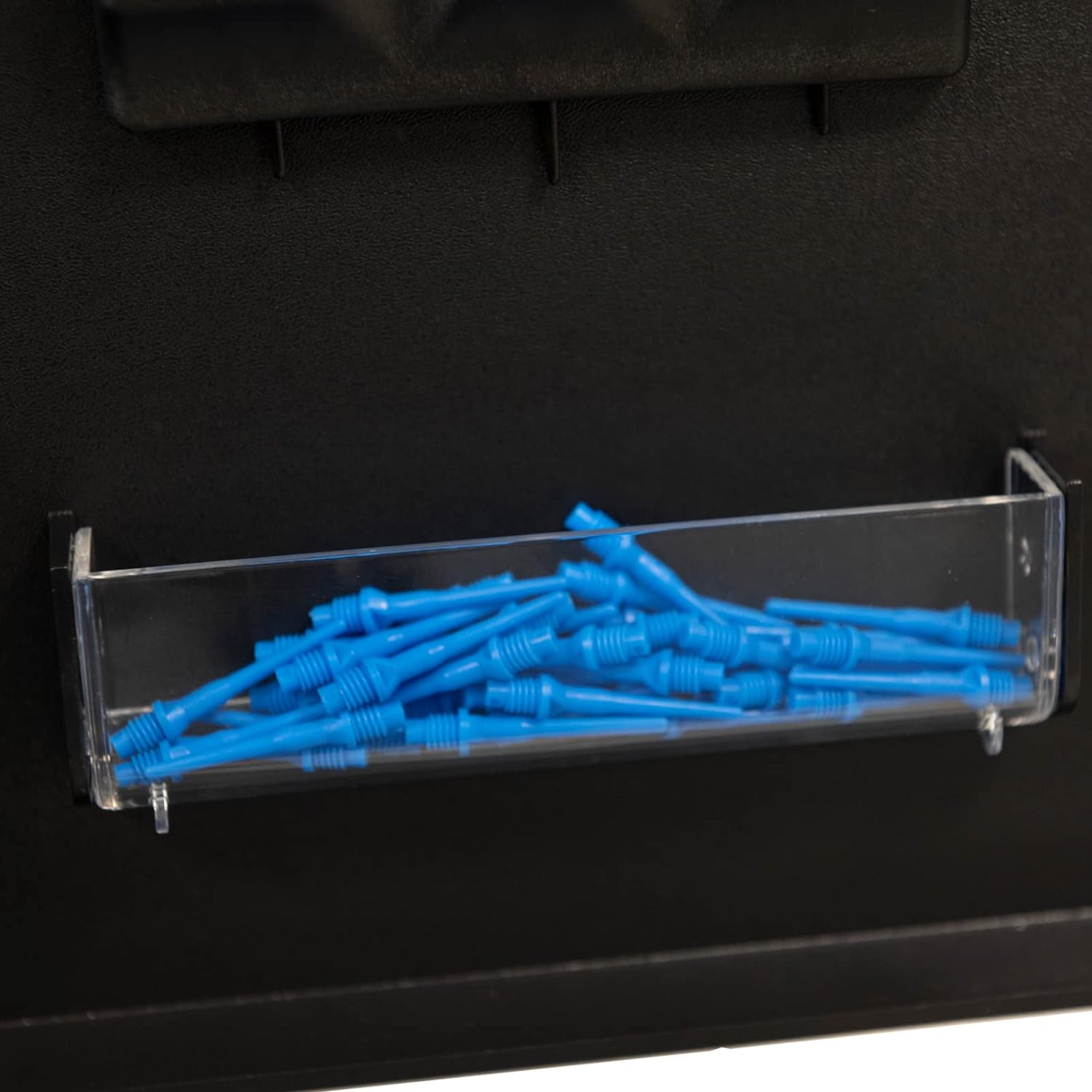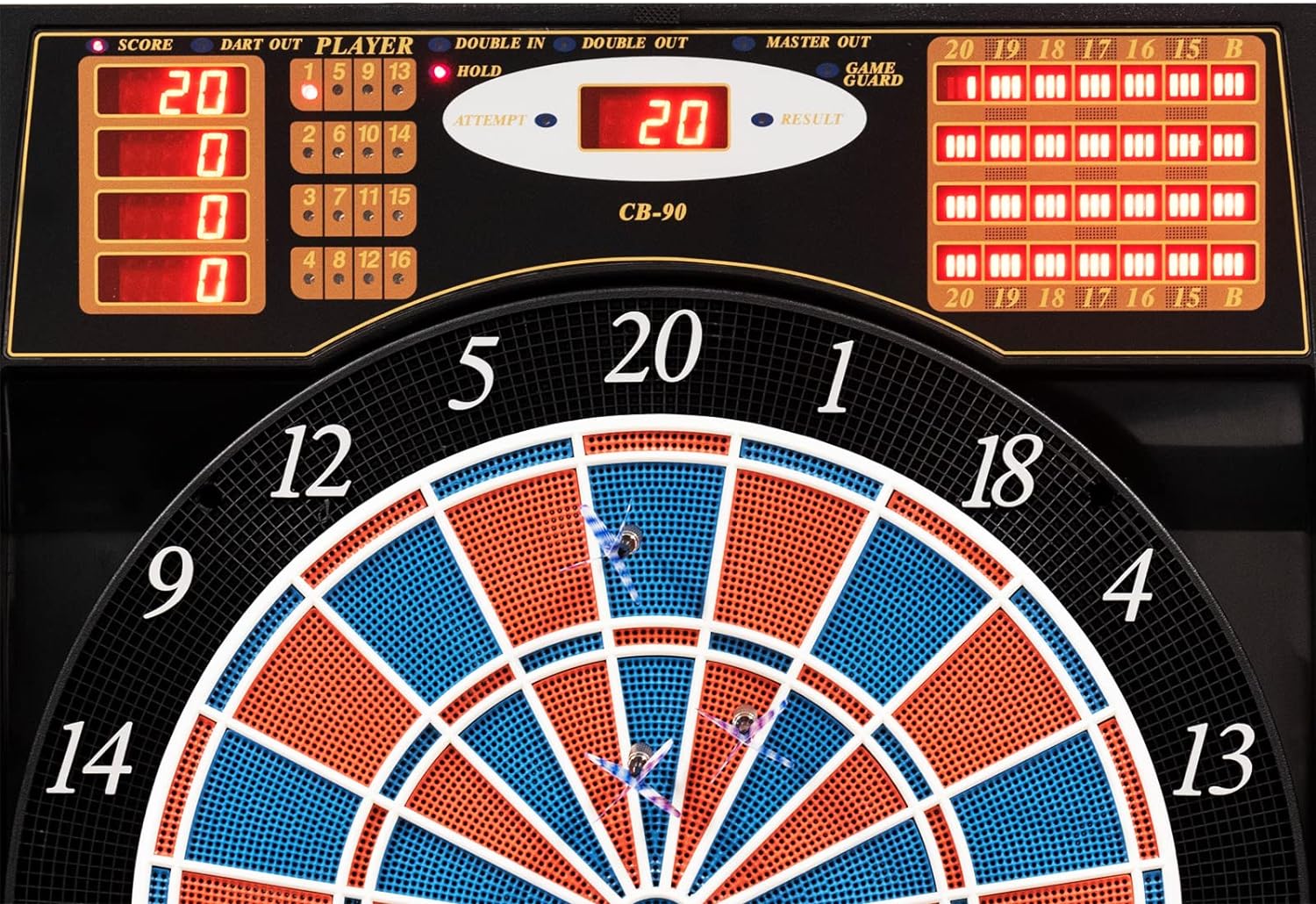 - Präzision, Design, Stauraum: 2-Zonen Bull's Eye für max. Zähloberfläche, Berechnung der Würfe zum Sieg für "01"-Spiele, Computer-Controll-Centre, Darthalter und Zubehörablage, Segmentfarben rot/blau, weisse Spinne