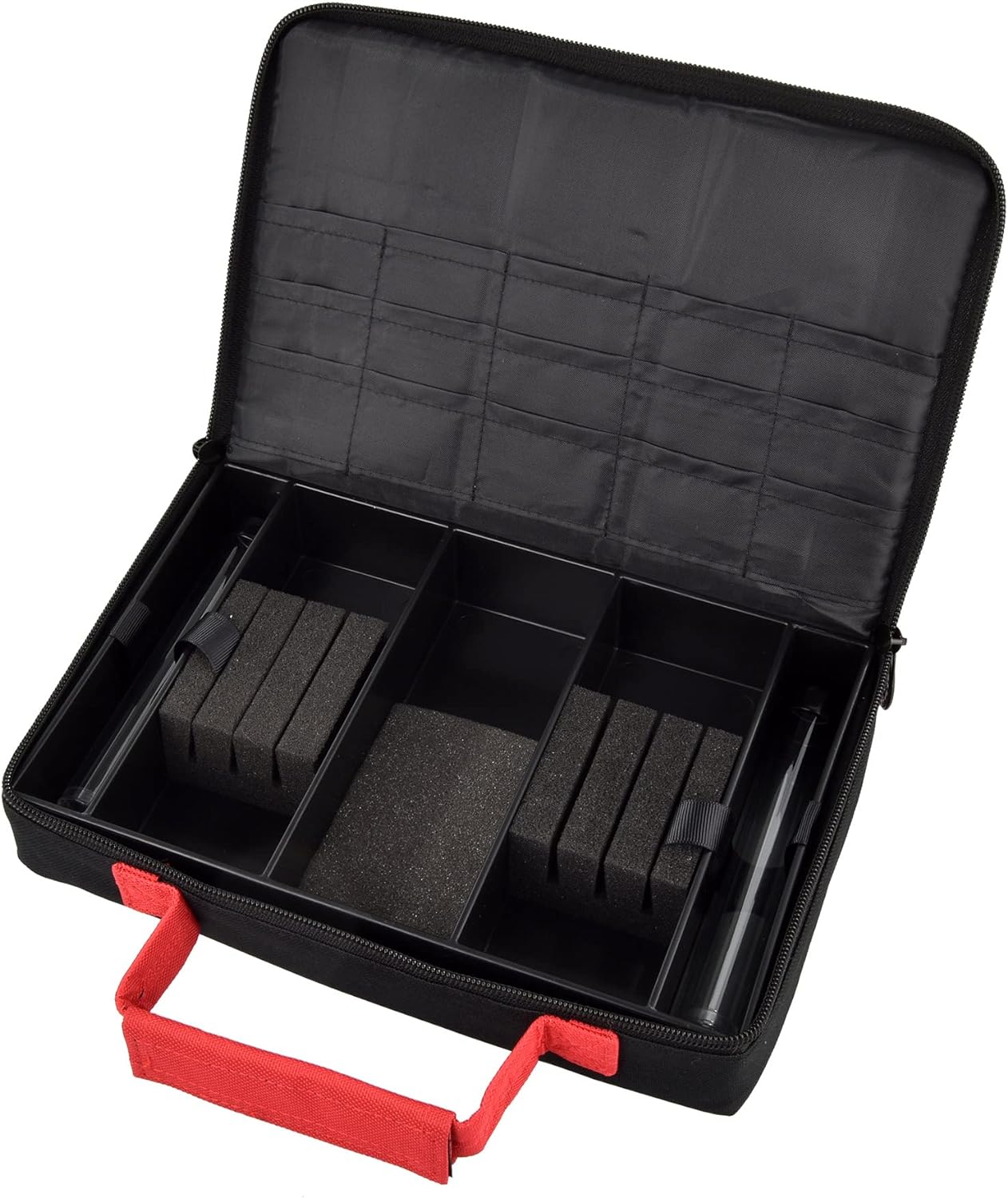 - Grosse, praktisch konzipierte Tasche mit Schaumstoffeinteilungen für bis zu 3 Satz montierte Darts und vielen Fächern für weiteres Zubehör