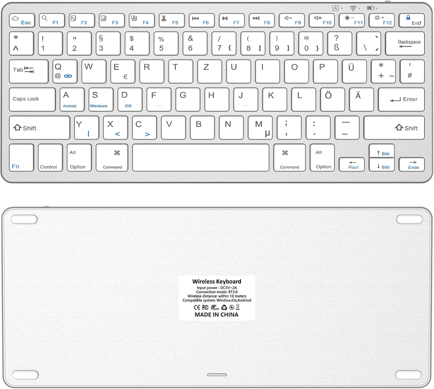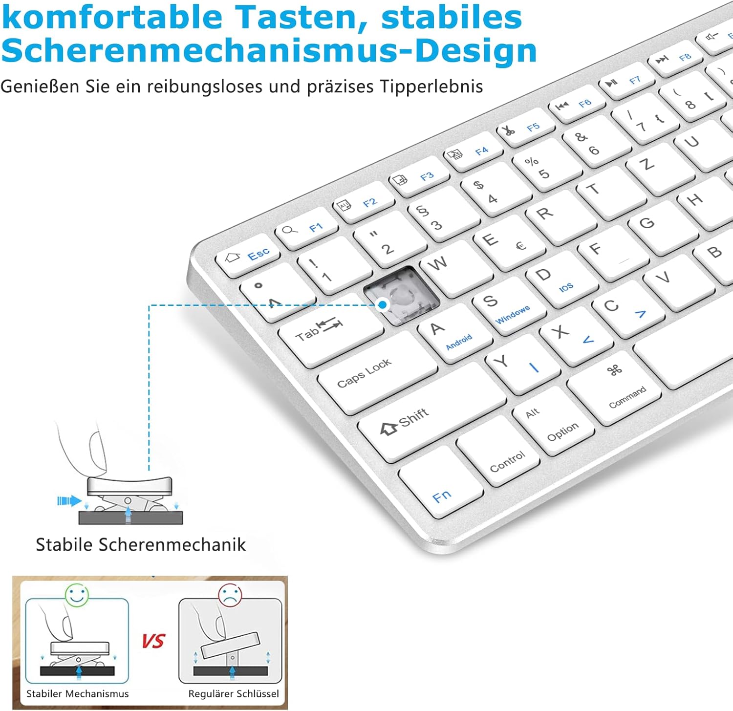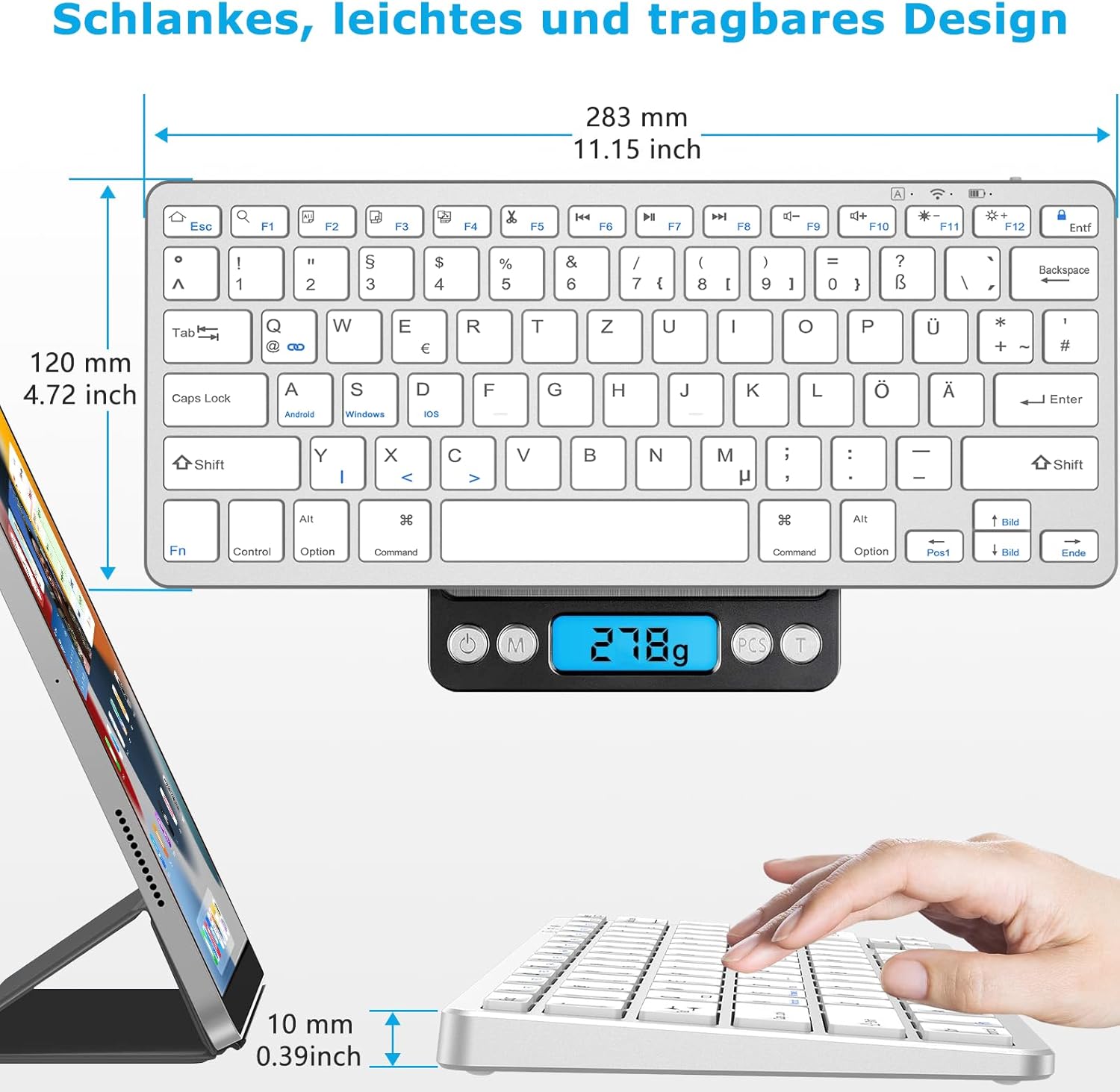 - 【 Ultradünn und tragbar 】 Die kabellose Bluetooth-Tastatur ist dünn und leicht genug, um sie in einer Handtasche, einem Rucksack oder einer Aktentasche zu transportieren, einfach zu tragen.