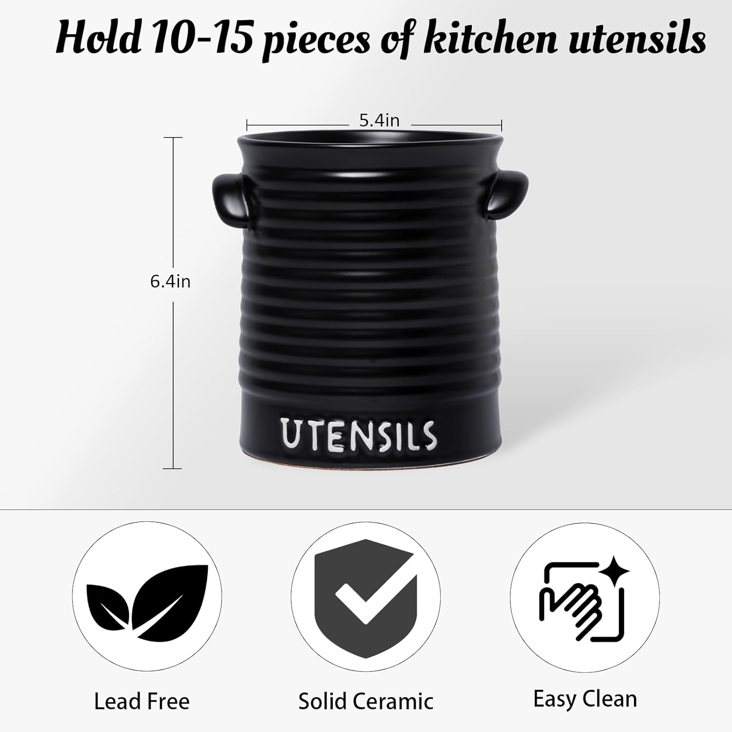 - Easy to Move: This ceramic utensil caddy has handles so you can effortlessly carry it from the kitchen to anywhere you need. Make kitchenware easily accessible.