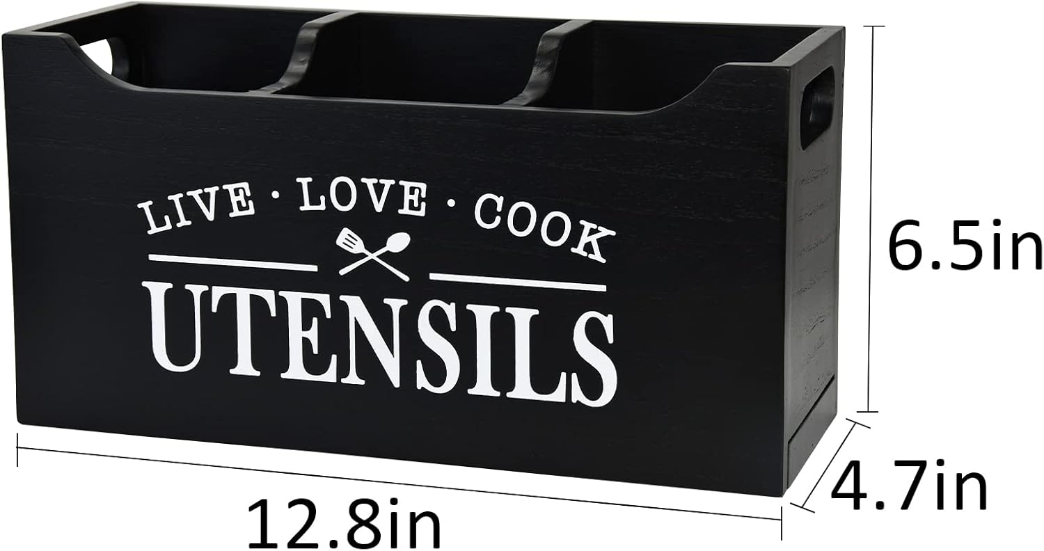- Grosser Utensilhalter: Der Holz Utensil -Organizer verfügt über 3 Fächer, in denen verschiedene Kochwerkzeuge trennen können, um Ihre Löffel, Spatel und Whichs effektiv zu organisieren.