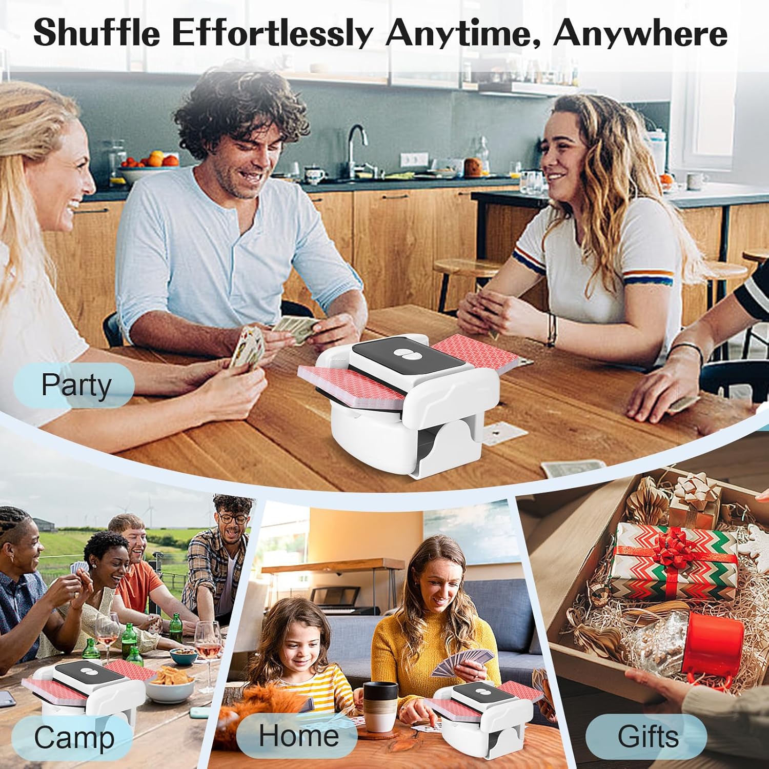 - 【Tragbarer Kartenmischer】Dieses stilvolle und kompakte Gerät besteht aus hochwertigem ABS-Material und wiegt nur etwa 500 Gramm. Ein robustes, leichtes Kartenmischgerät, das Sie leicht zu Partys, zum Camping, auf Reisen und zu anderen Anlässen