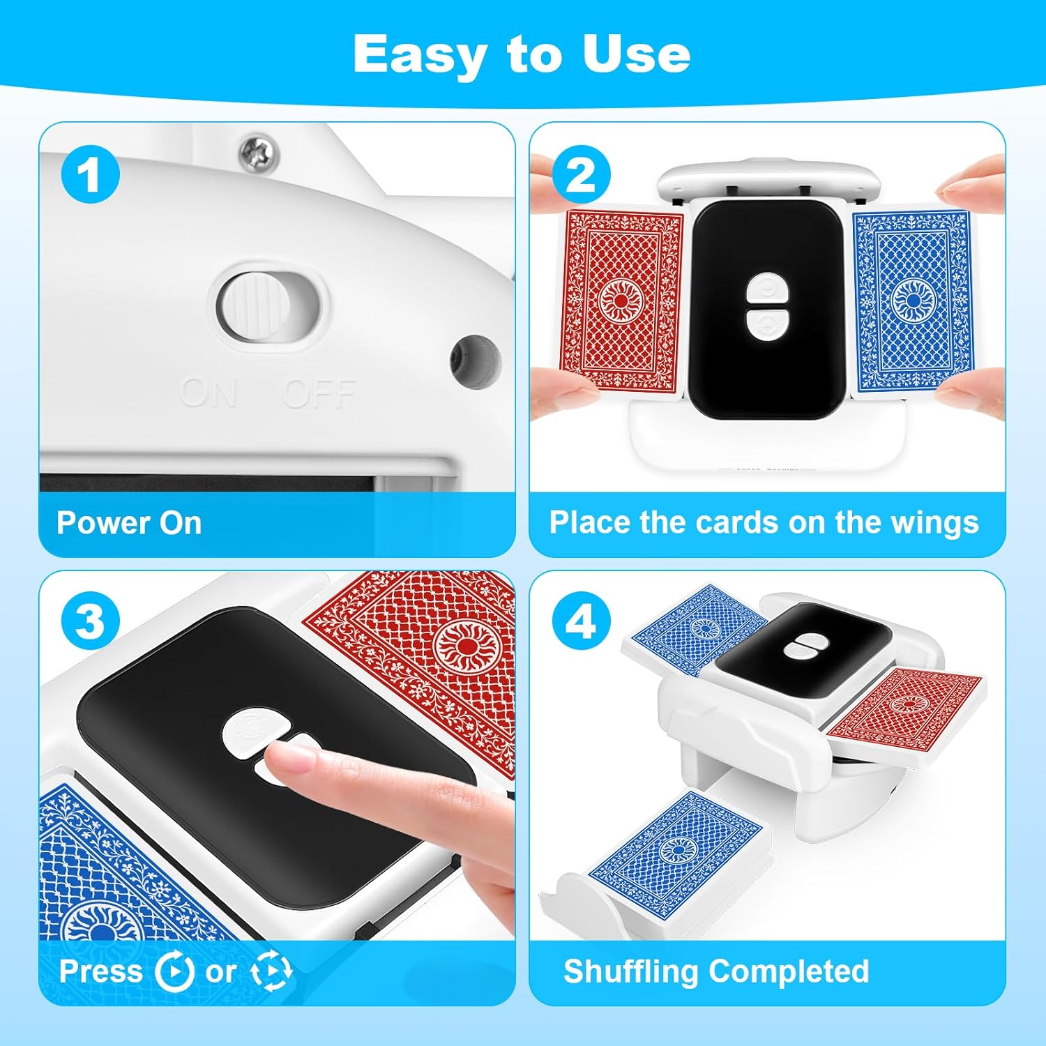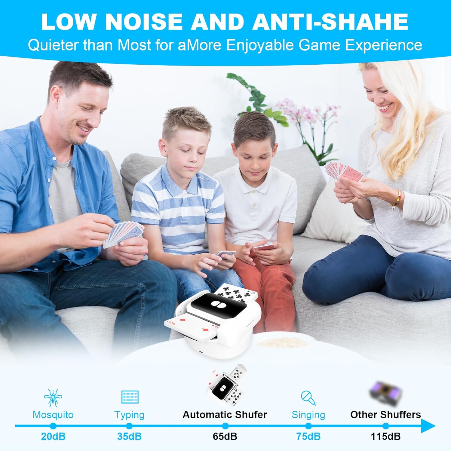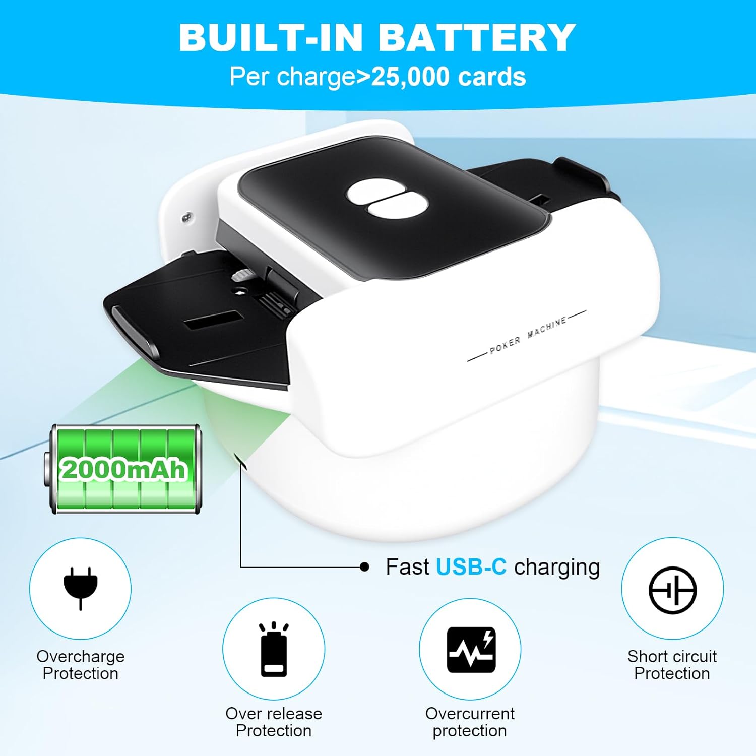 - Zwei Mischmodi – Unser Kartenmischer bietet die Wahl zwischen vollautomatischem und halbautomatischem Modus. Zwei separate Tasten erleichtern das Umschalten und Spielen nach Ihren Wünschen.