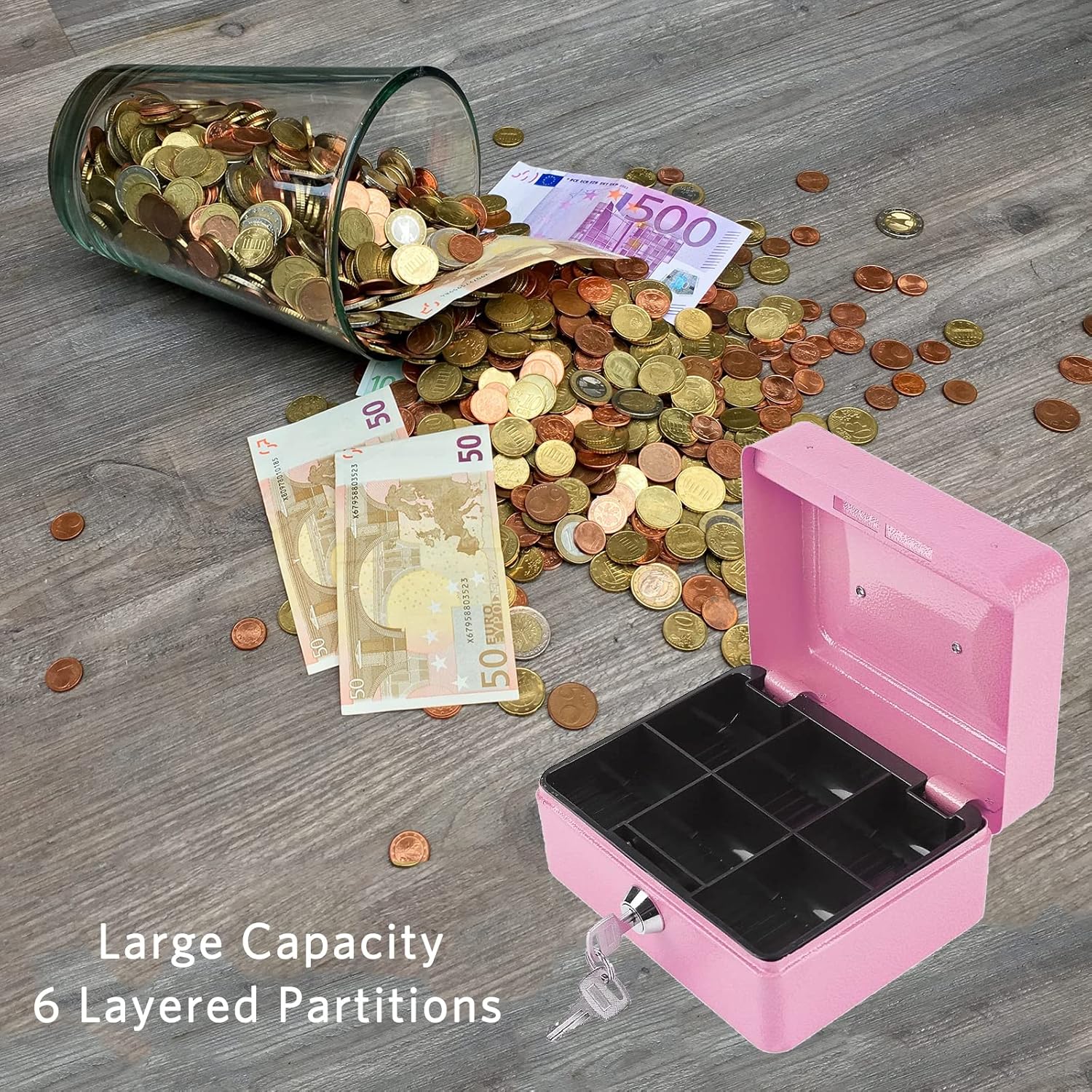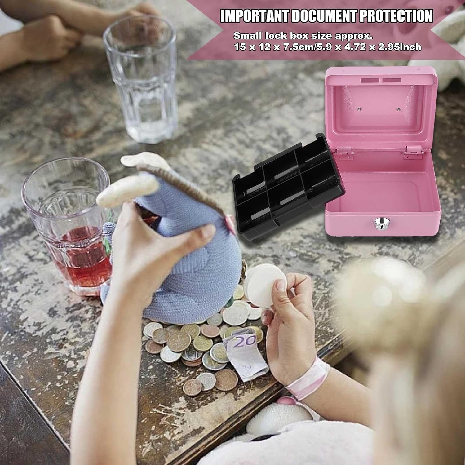 • 💰【Geldkassette abschliessbar mit Schlüssel und Hartgeldeinsatz】: Unsere Sicherheitsbox besteht aus Stahlmaterial, Schlüsseltresor Grösse: 15 x 12 x 7,5 cm (5,9 x 4,72 x 2,95 Zoll) (L x B x H). rosa Schlüsseltresor ist das perfekte