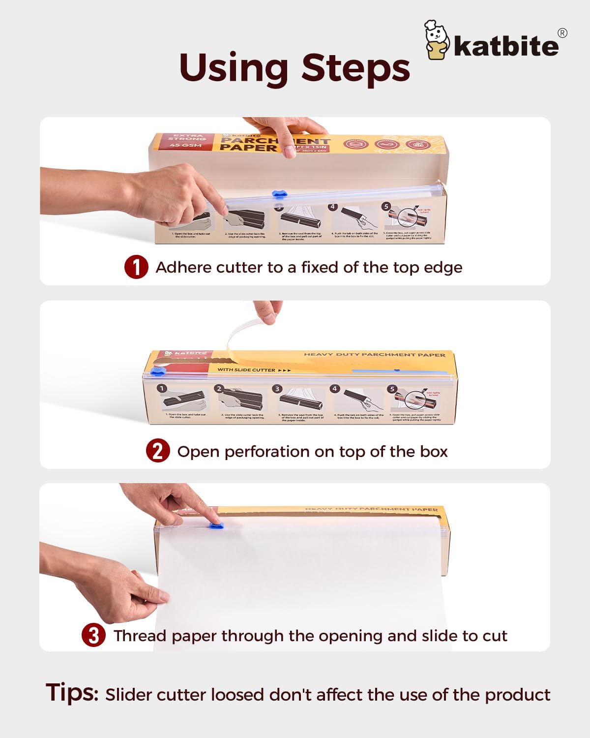 - MIT GLEITENDEM SCHNEIDER, EINFACH ZU BEDIENEN - Die Pergamentrollen sind 38 cm breit und 64 cm lang. Dieses Backpapier kann mit dem Pergamentspender mit Cutter auf jede beliebige Länge geschnitten werden, die Ränder sind perfekt glatt, und es ist so
