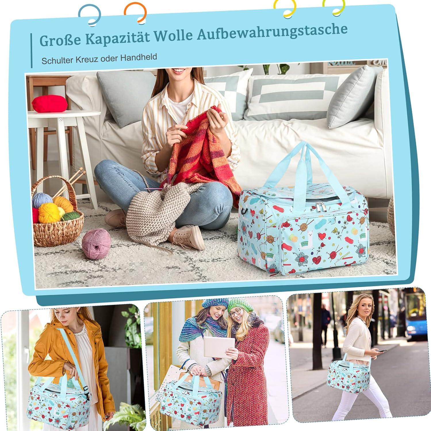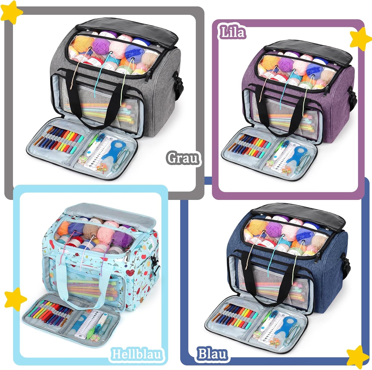 - Perfekte Kapazität: 4 kleines Fach mit passenden Löchern auf der Oberseite ist grossartig, um die Fäden des Garns getrennt zu halten und das Reissen, das Verheddern oder das Ausfransen zu verhindern. Reissverschlusstasche vorne mit elastischen