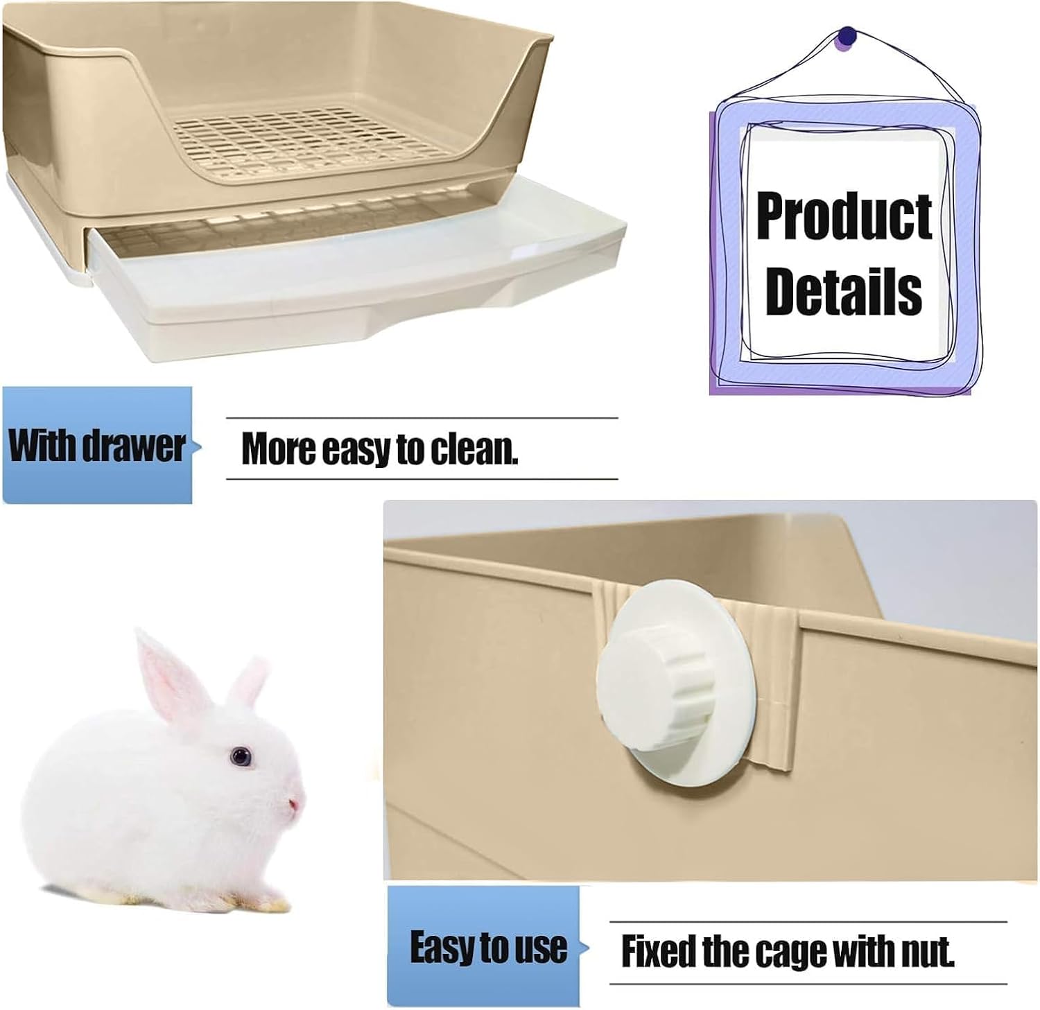kathson grosses Kaninchenklo zum Trainieren, Töpfchen-Ecktoilette mit Schublade, grösses Klo für erw