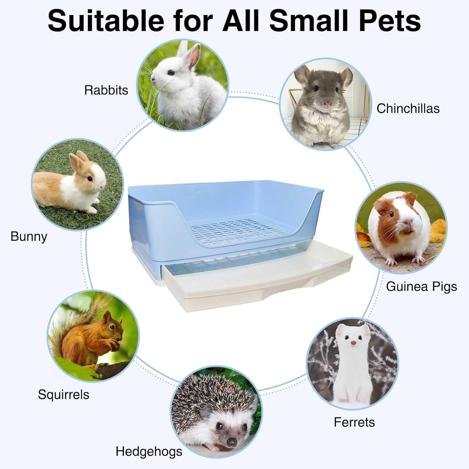 - Material: Aus haltbarem, schmutz- und geruchsabweisendem Kunststoff. Der Boden ist verstärkt, um Kleintiere von 3–8 kg standzuhalten.