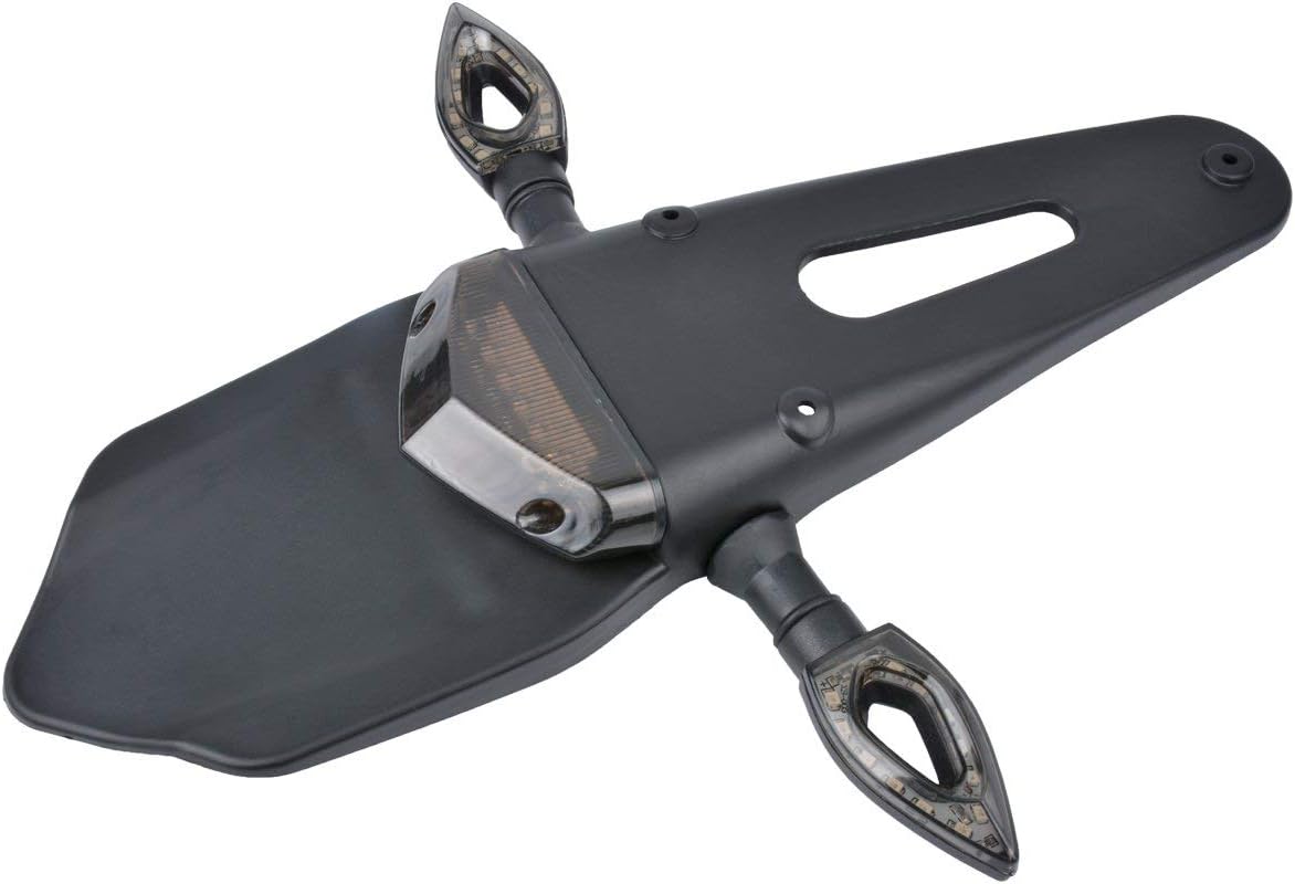 - Drei Befestigungspunkte mit zentralem Loch für einfache Reinigung. Ein kleiner Nummernschild-Halter für Off-Road-Bikes mit LED Bremsleuchte. Seite mit LED Blinker Lampen.