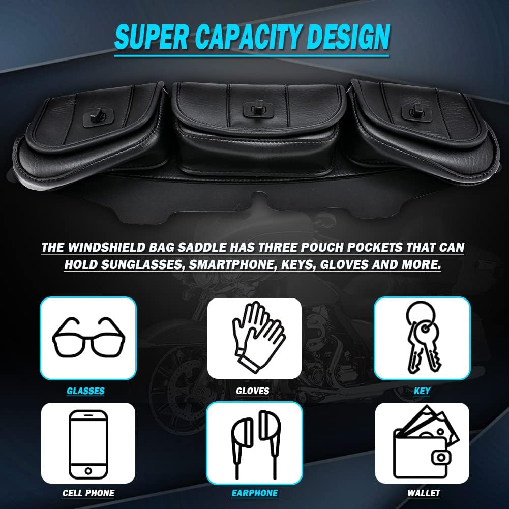 KATUR Motorrad Windschutzscheiben Tasche PU Leder mit Magnetverschluss für Harley Touring Street Gli