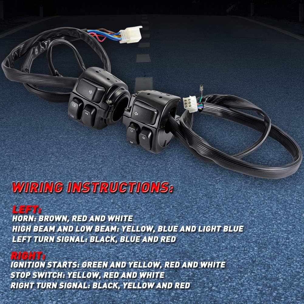 KATUR 1 Paar Motorradlenker-Steuerschalter mit Kabelbaum für Harley