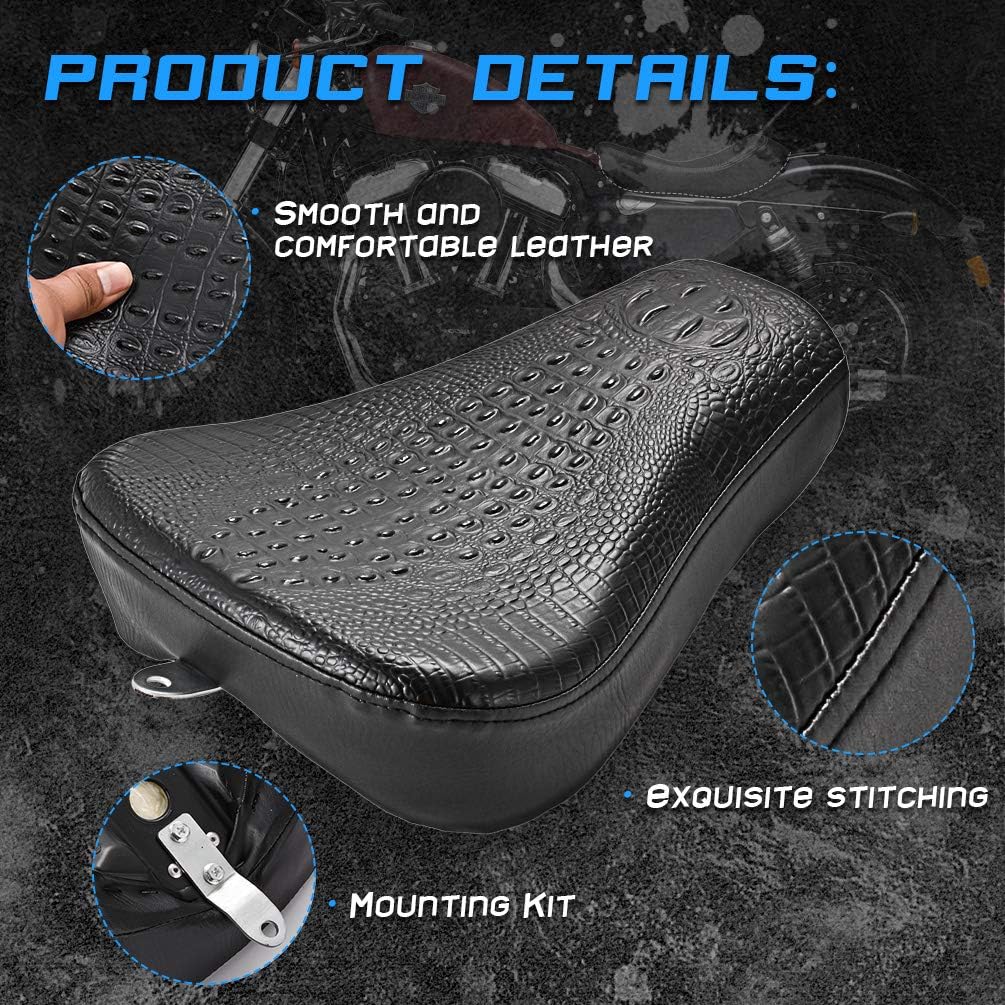 - ★ 【Schwarzes Krokodil-Oberflächendesign】 Verfügt über ein detailliertes Design in dem sehr strapazierfähigen synthetischen Motorrad-Solo-Sitzkissen. Präzise Krokodil-Oberfläche, bringt ein zufriedenstellendes Fahrerlebnis für Sie, lässt Sie