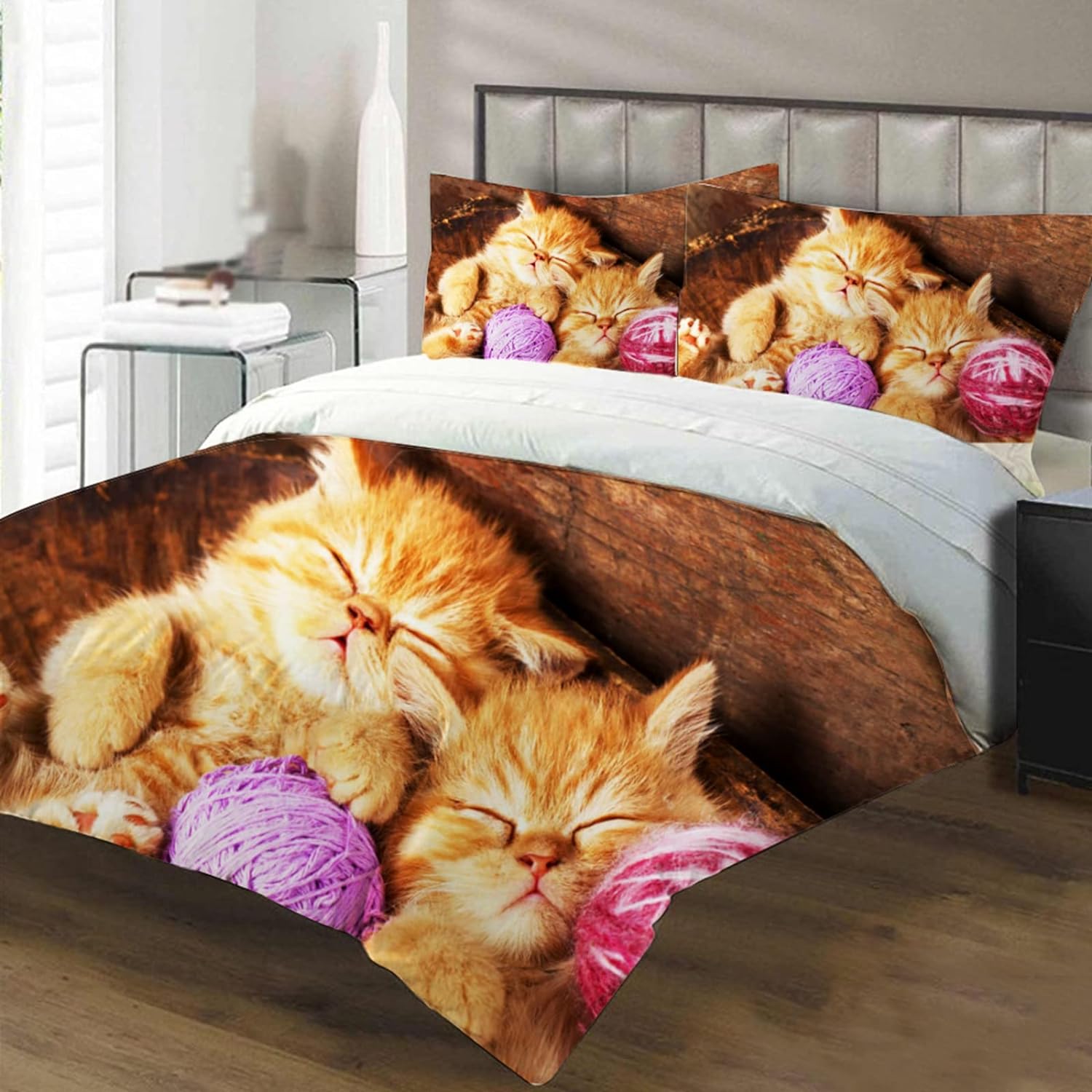 - 🐾【Katze Bettwäsche Set】 Dieser set Katze 3d Bettwäsche Sets Hergestellt aus Mikrofaser Und Baumwolle, fühlen Sie sich gross, bequem, super weich und bequem 3d Bettwäsche, decken Sie Ihre Daunendecke oder einfügen, geben Sie ein neues Aussehen