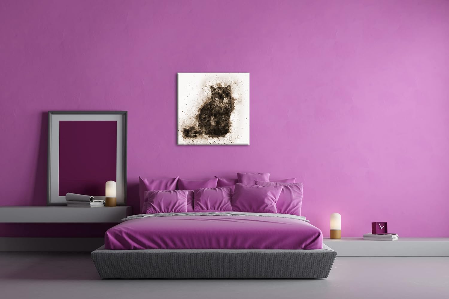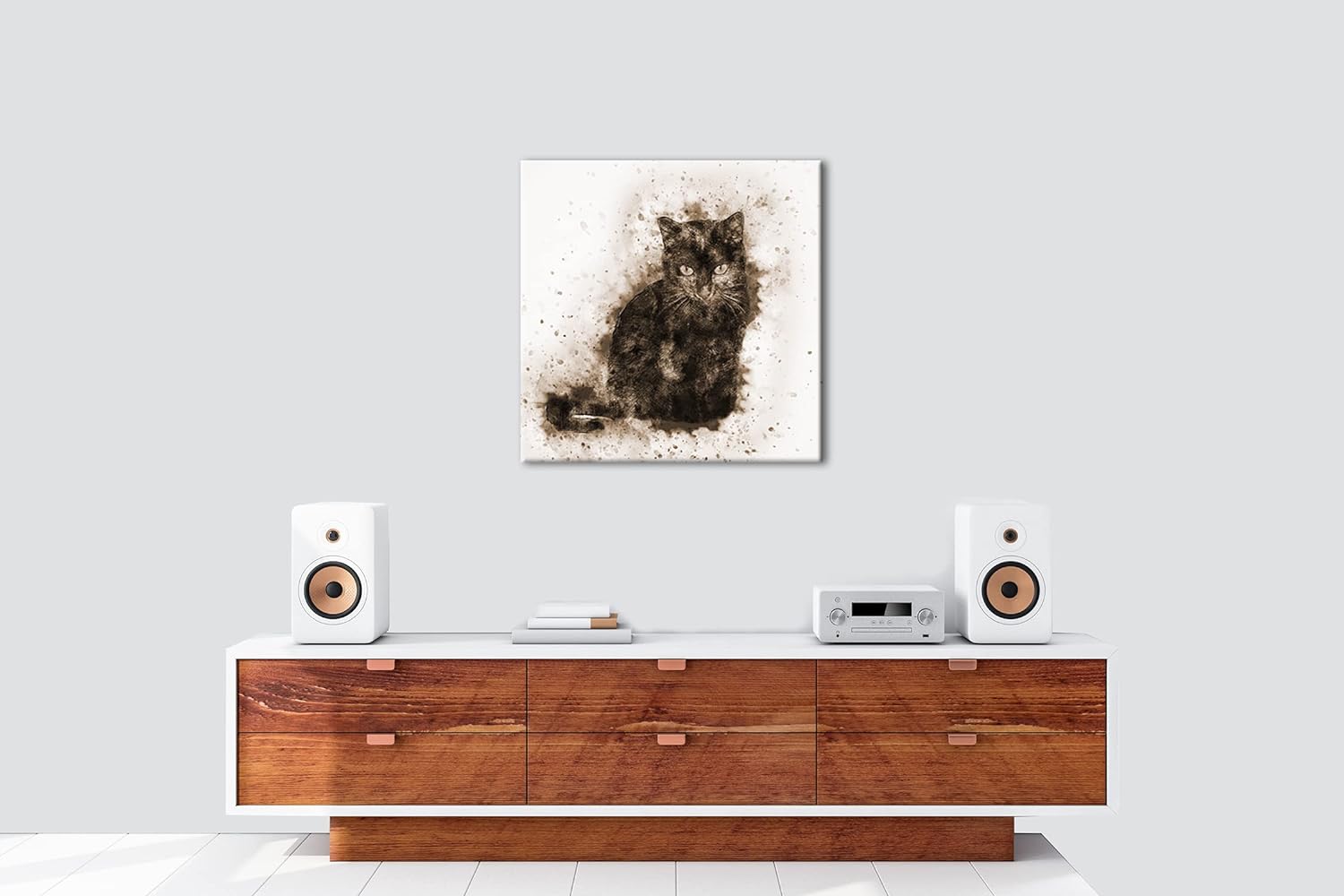 Katze Hauskatze Format: 60x60 Effekt: Sepia als Leinwandbild, Motiv fertig gerahmt auf Echtholzrahme