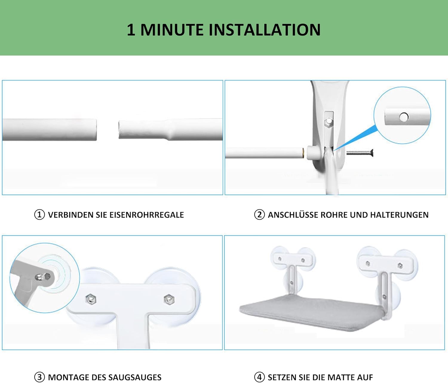 - ⚡ 【1-Minuten-Montage & Platzsparend faltbar】Keine Werkzeuge nötig! Einfach Saugnäpfe anfeuchten, aufs Fenster drücken – fertig! Der U-förmige Rahmen klappt flach zusammen und verschwindet hinter Vorhängen. Perfekt für kleine Wohnungen!