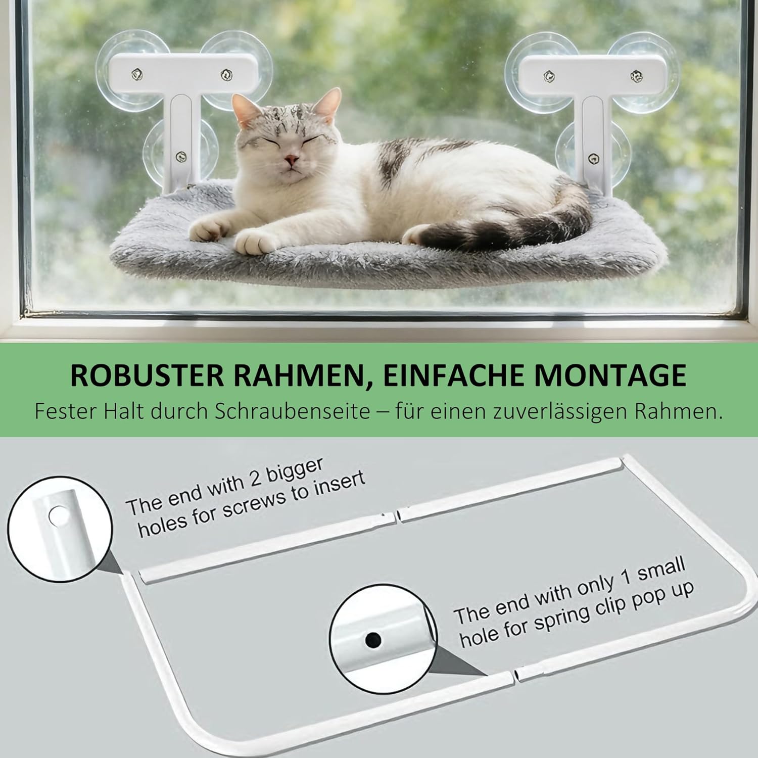 - 🔶 【Sechsfach-Saugnapfsystem mit Dreiecksanordnung】Unsere Katzenfenster-Hängematte verfügt über 6 hochfeste Saugnäpfe – 3 pro Seite in stabiler Dreiecksformation. Diese innovative Anordnung verteilt das Gewicht gleichmässig und bietet bis zu