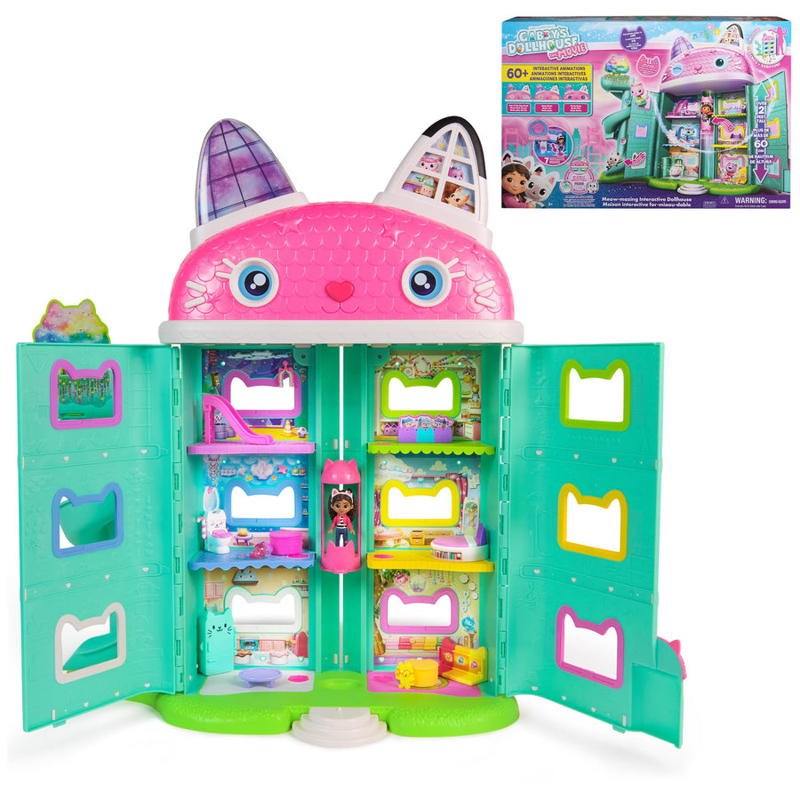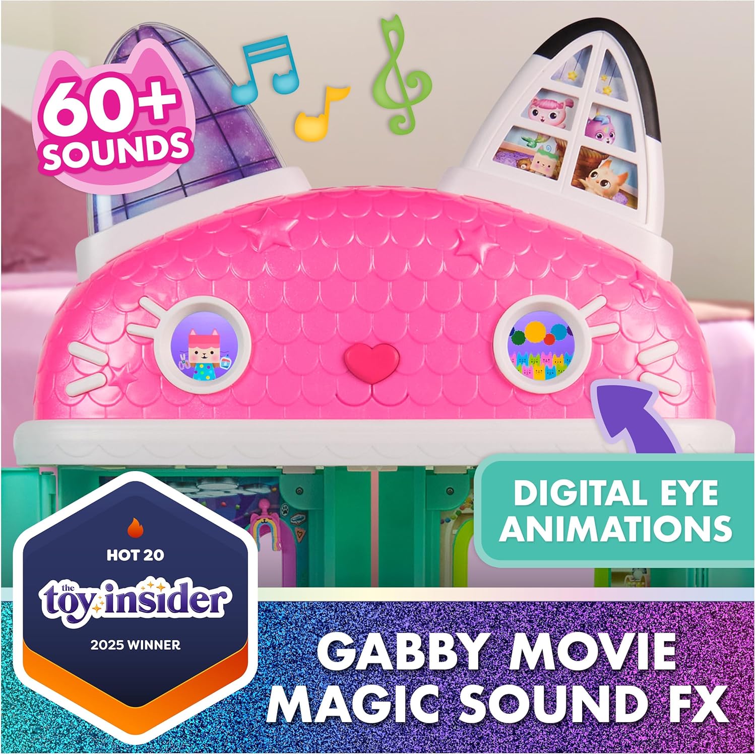 - Gabby Movie Magic: Gabby's Meow-mazing Interaktives Puppenhaus ist über 2 Fuss hoch, 7 interaktive Räume, animierte LCD-Augen, eine Katze wirkende Katze und eine Spiralrutsche für Puppenhaus-Lieferungen