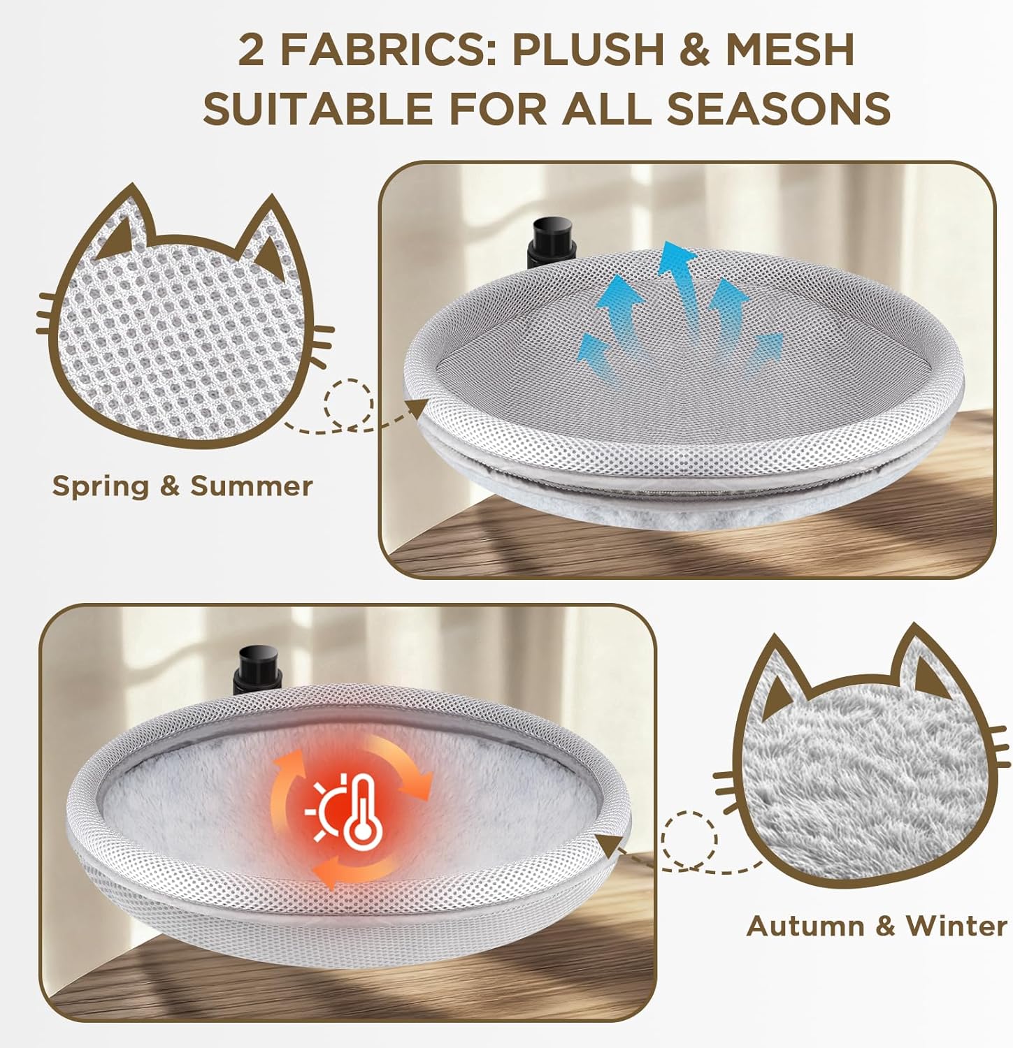 - ZWEISEITIGER SAISONSTOFF: Katzenheizkörperbett, warm im Winter und kühl im Sommer. Die Kissen sind wechselbar mit Plüsch (warm im Winter) und atmungsaktivem Mesh (kühl im Sommer) für alle Jahreszeiten. Die 3 cm dicke Polsterung bietet weiche