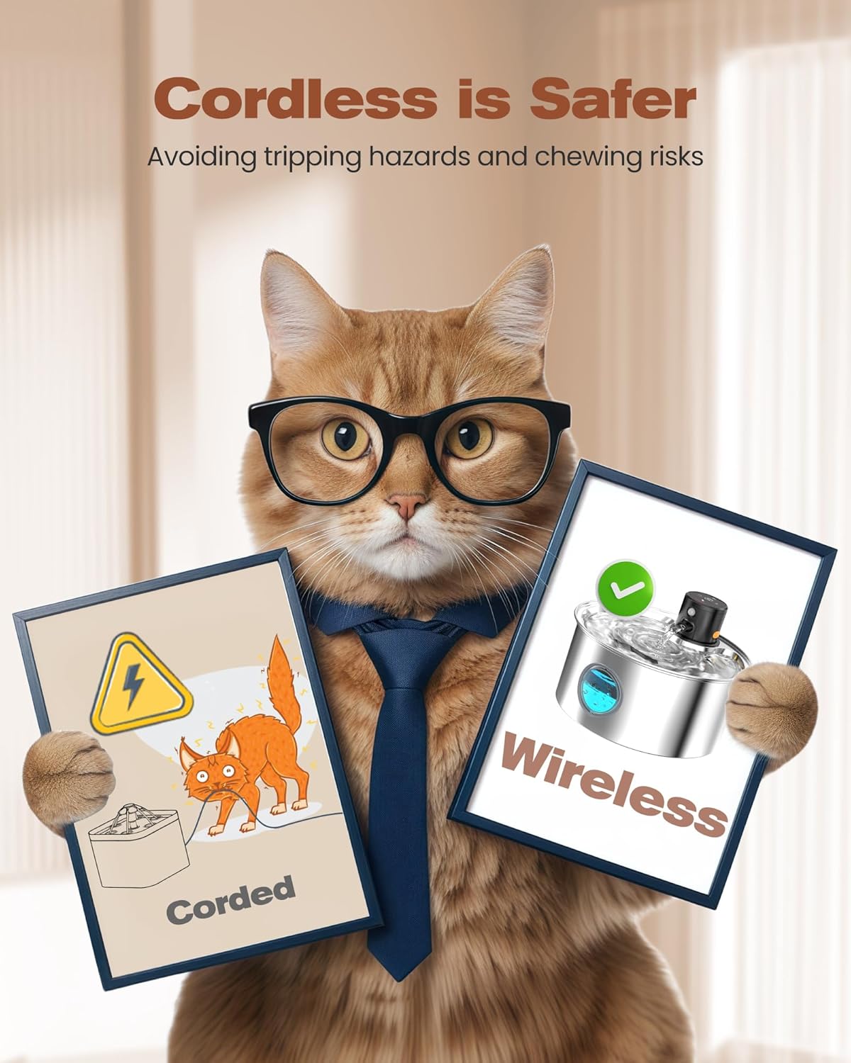 - katzenbNeue Trinkwassererfahrung für Haustiere: Der wasserbrunnen für katzen kabellos benötigt keine Kabel und kann an jedem Ort wie im Spielzimmer, in der Küche, im Wohnzimmer oder auf der Fensterbank verwendet werden, um frisches Trinkwasser