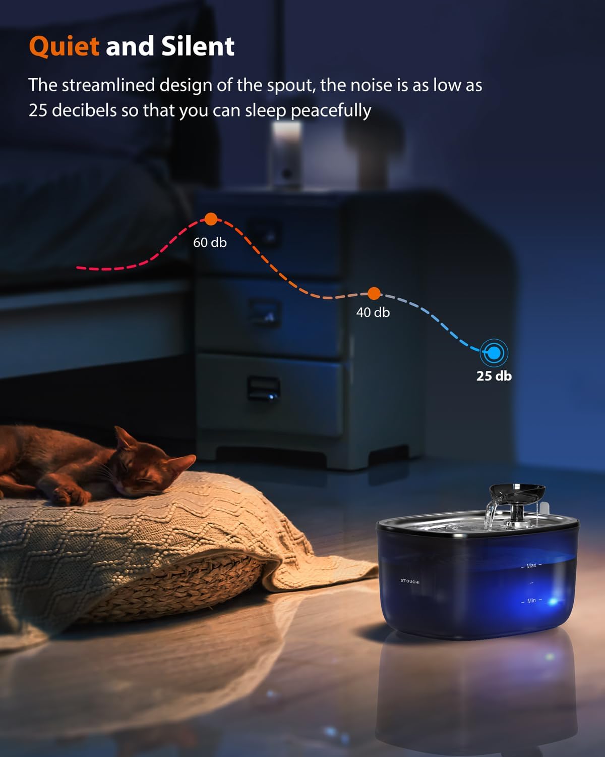 - 【Ultraleise, energiesparende und umweltfreundliche】: Ausgestattet mit einer ultraleisen, energiesparenden Wasserpumpe ( ≤ 25dB in professionellen Labortests), so dass sowohl Sie als auch Ihr Haustier einen ruhigen Schlaf geniessen können.