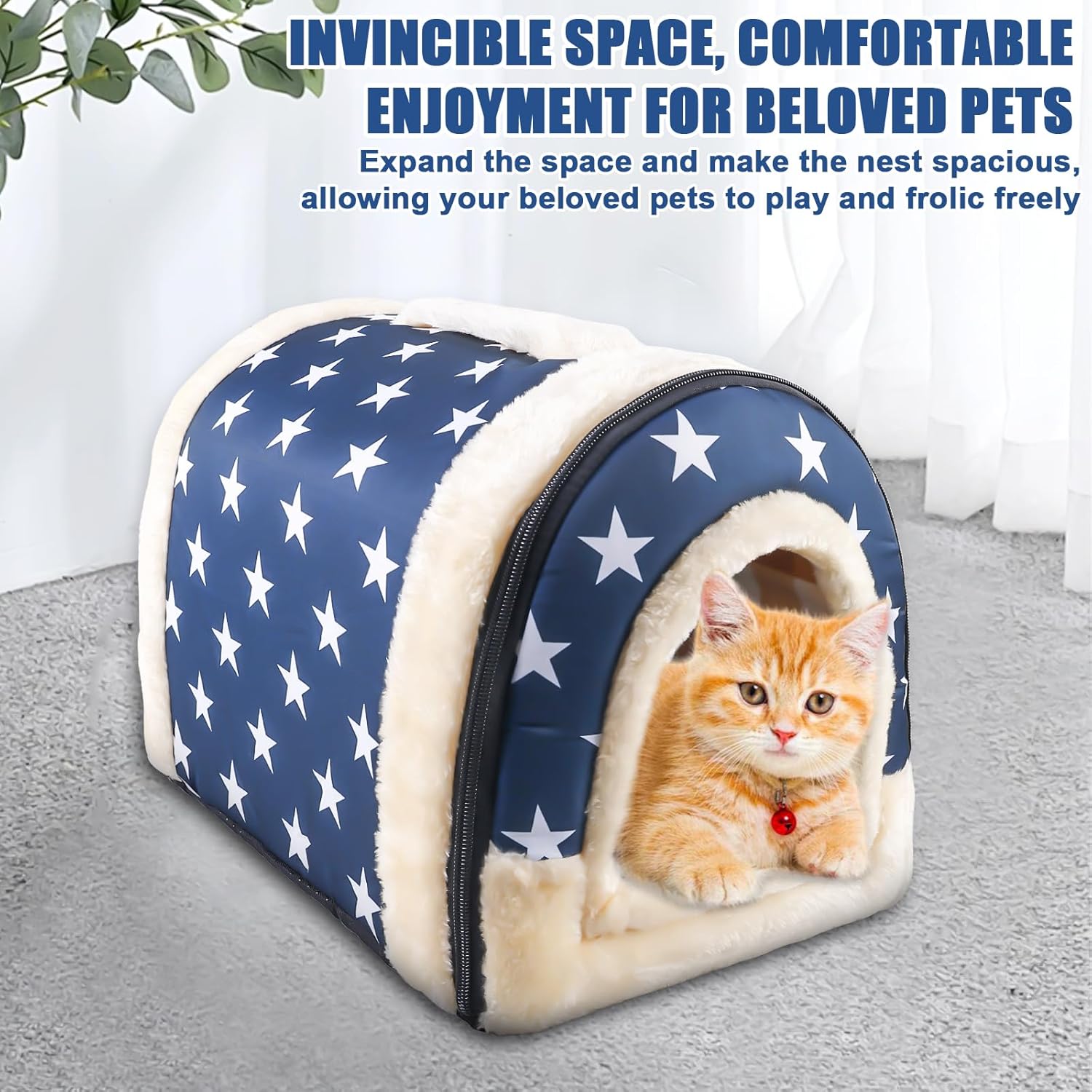 • 【Halbgeschlossenes Design】Halbgeschlossenes haustiernest,um haustiere vor dem rauen winterwetter zu schützen. Langlebig und nicht leicht zu kollabieren.Die Oberseite des Katzennests nimmt ein gewölbtes Design an, das kein Wasser ansammelt und eine