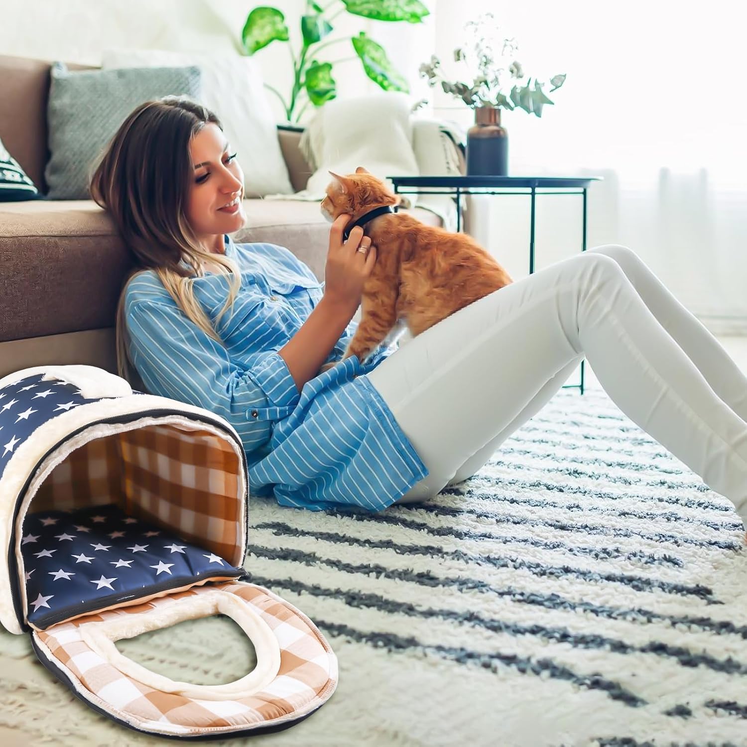 • 【Ein Nest für zwei Zwecke】Ein warmes und gemütliches, sicheres Hausbett für Ihren Hund und Ihre Katze, mit einem dicken und weichen Innenkissen für maximalen Komfort oder als offenes Sofa, das durch einfaches Herunterdrücken des Daches