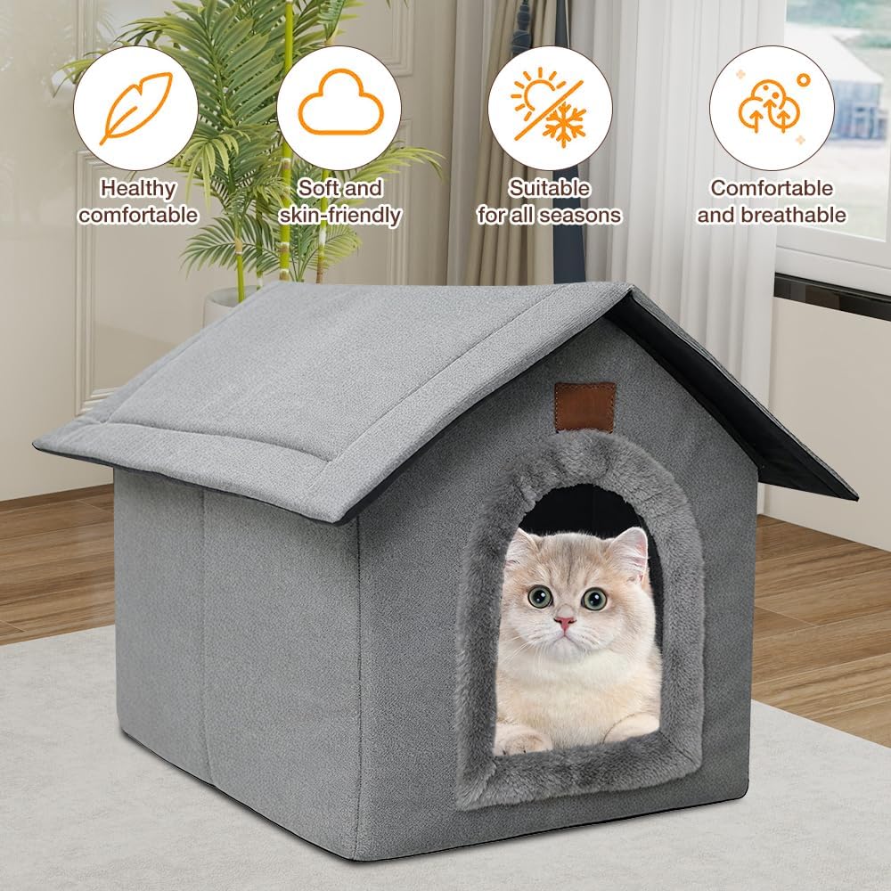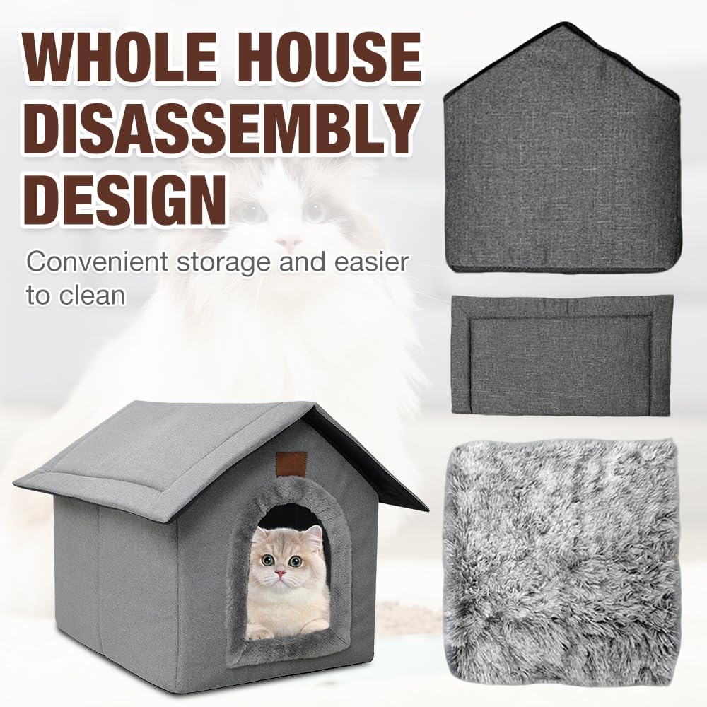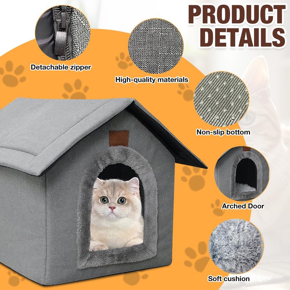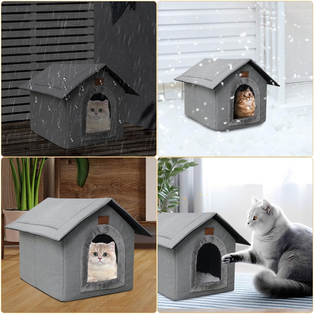 Katzenhaus Outdoor Winterfest, Katzenhöhle, Hundehöhle mit Abnehmbarem Plüschkissen, Wasserdicht Wet