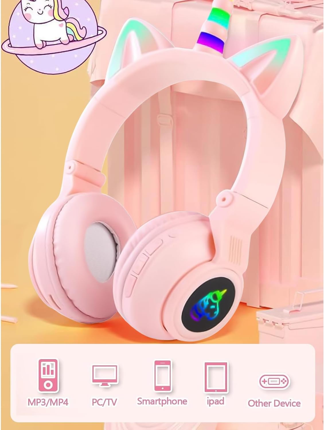 - 🎀【Bestes Geschenk für Kinder】Das niedliche Bluetooth-Headset macht Spass und ist charmant, und seine Form ist so süss wie eine Katze, was Ihr Kind zu einem leuchtenden Stern macht und auf der Party immer die Aufmerksamkeit anderer Leute auf sich