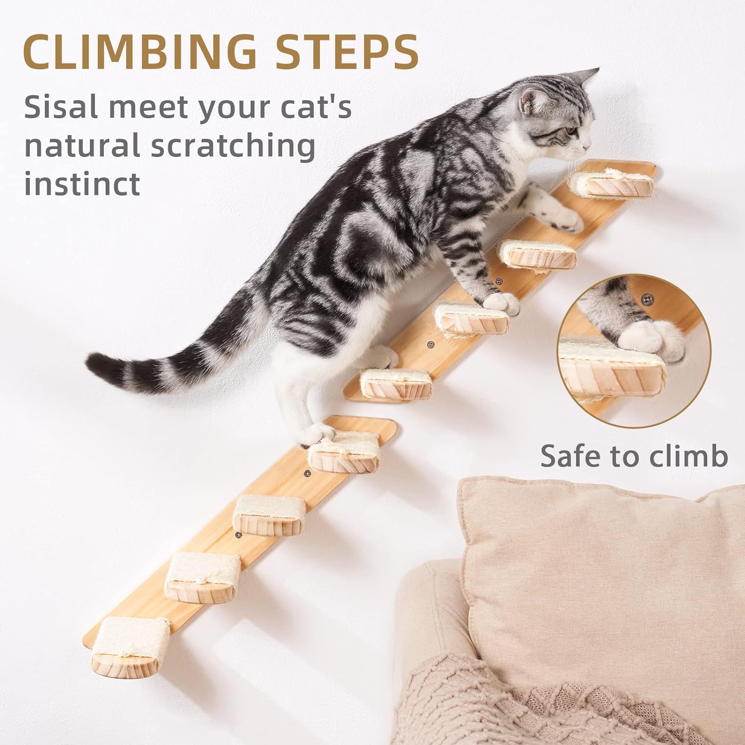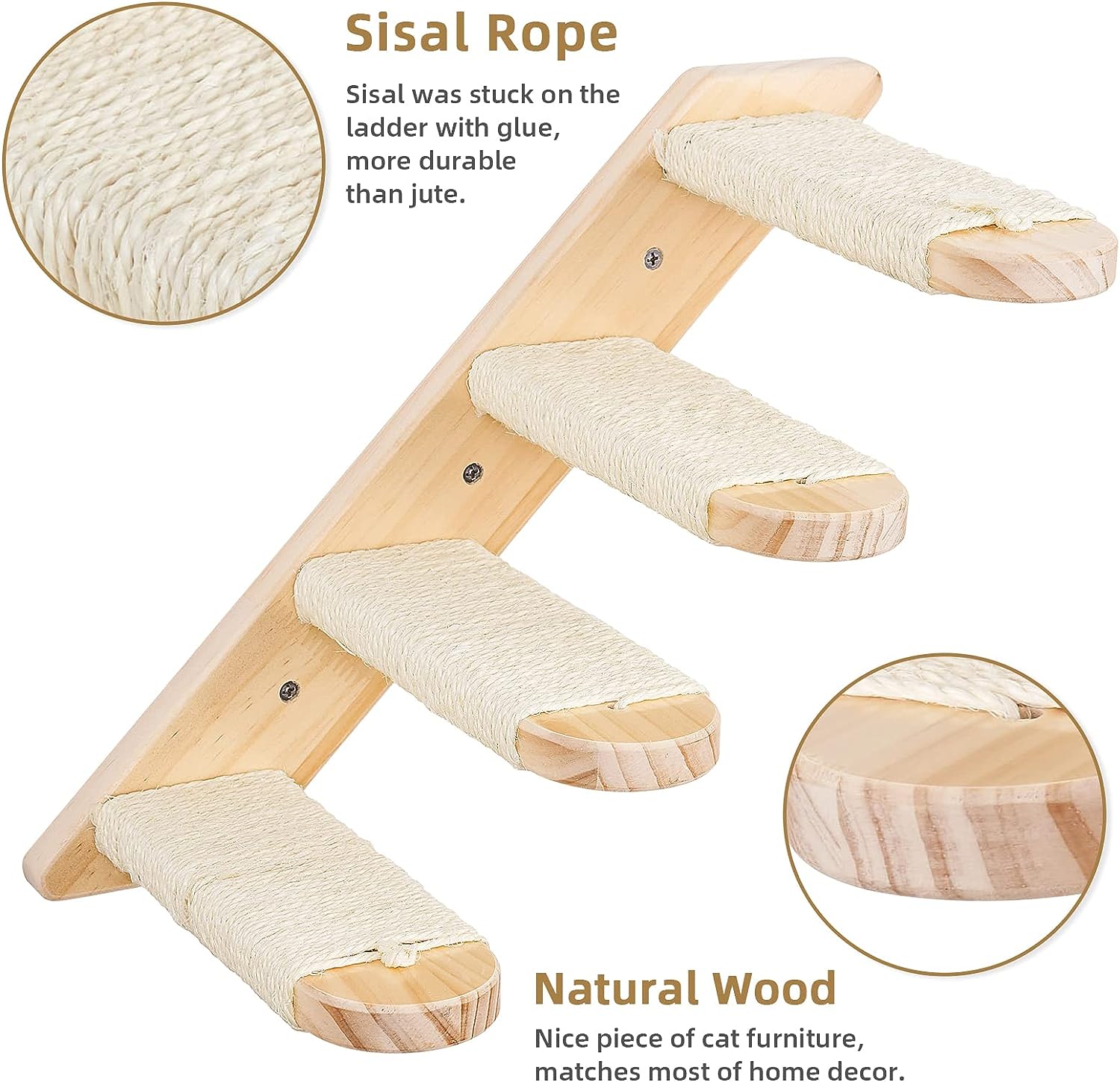 - 🐈 ERGÄNZUNG ZU IHRER HAUSDEKOR - Unsere Katzen-Holzleiter nimmt natürliche Holzmaterialien und -farben an, die zur weissen Wand passen - Holzästhetik