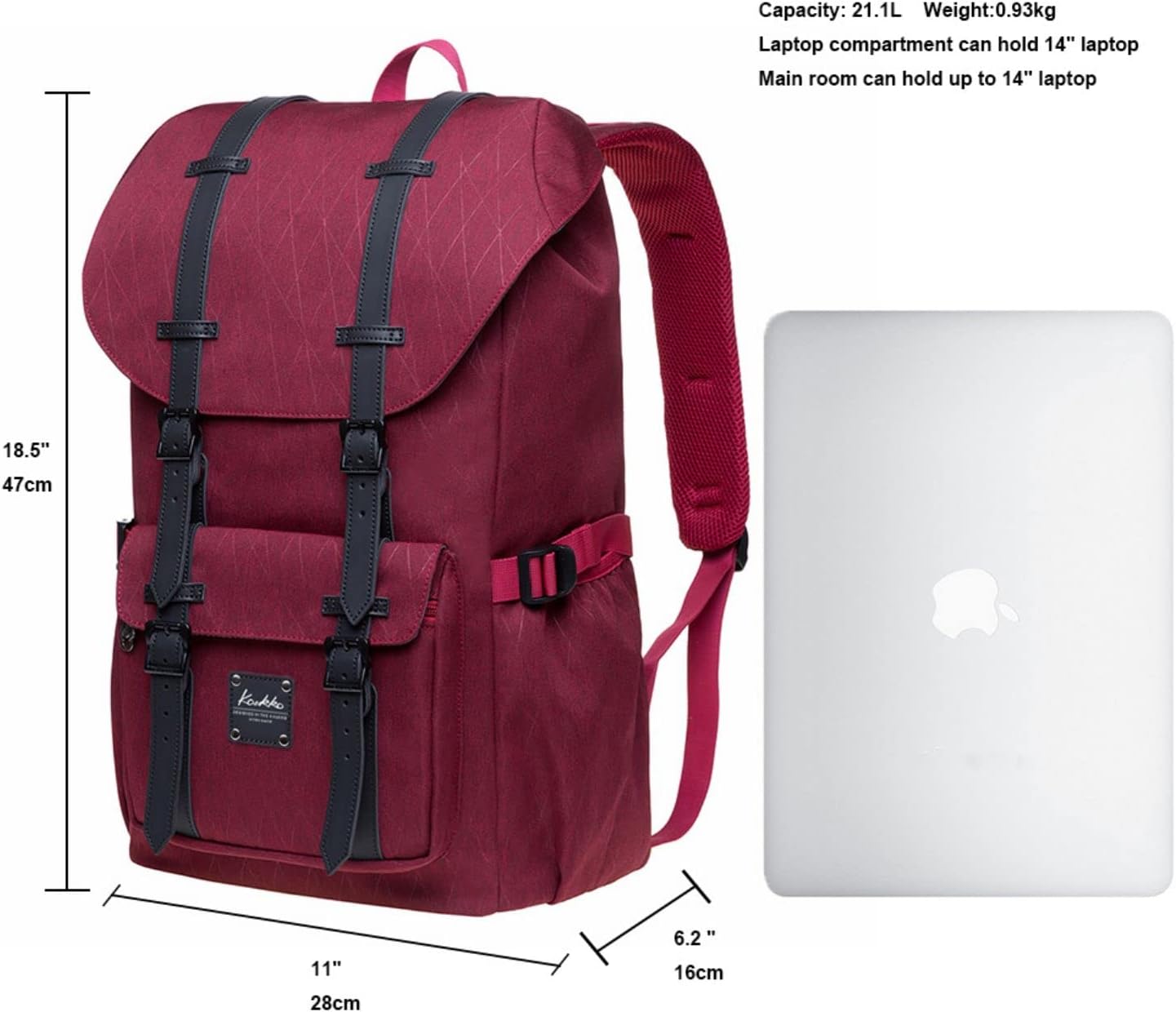 - GROSSE KAPAZITÄT & VIEL STAURAUM. Die Masse des Rucksacks sind 18.5 x 11 x 6.2inch (HxBxT) mit einer Kapazität von 19 Liter. Das Staufach für Notebooks ist für Geräte mit bis zu 14" geeignet.