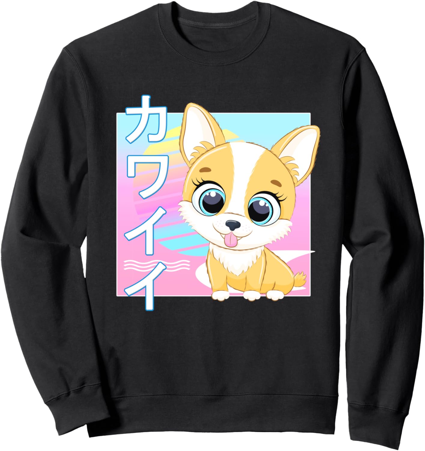 Kawaii Corgi Hund 90er 80er Jahre Japanischer Stil Design Sweatshirt