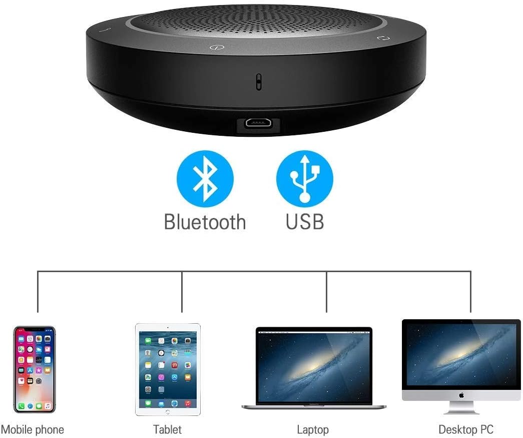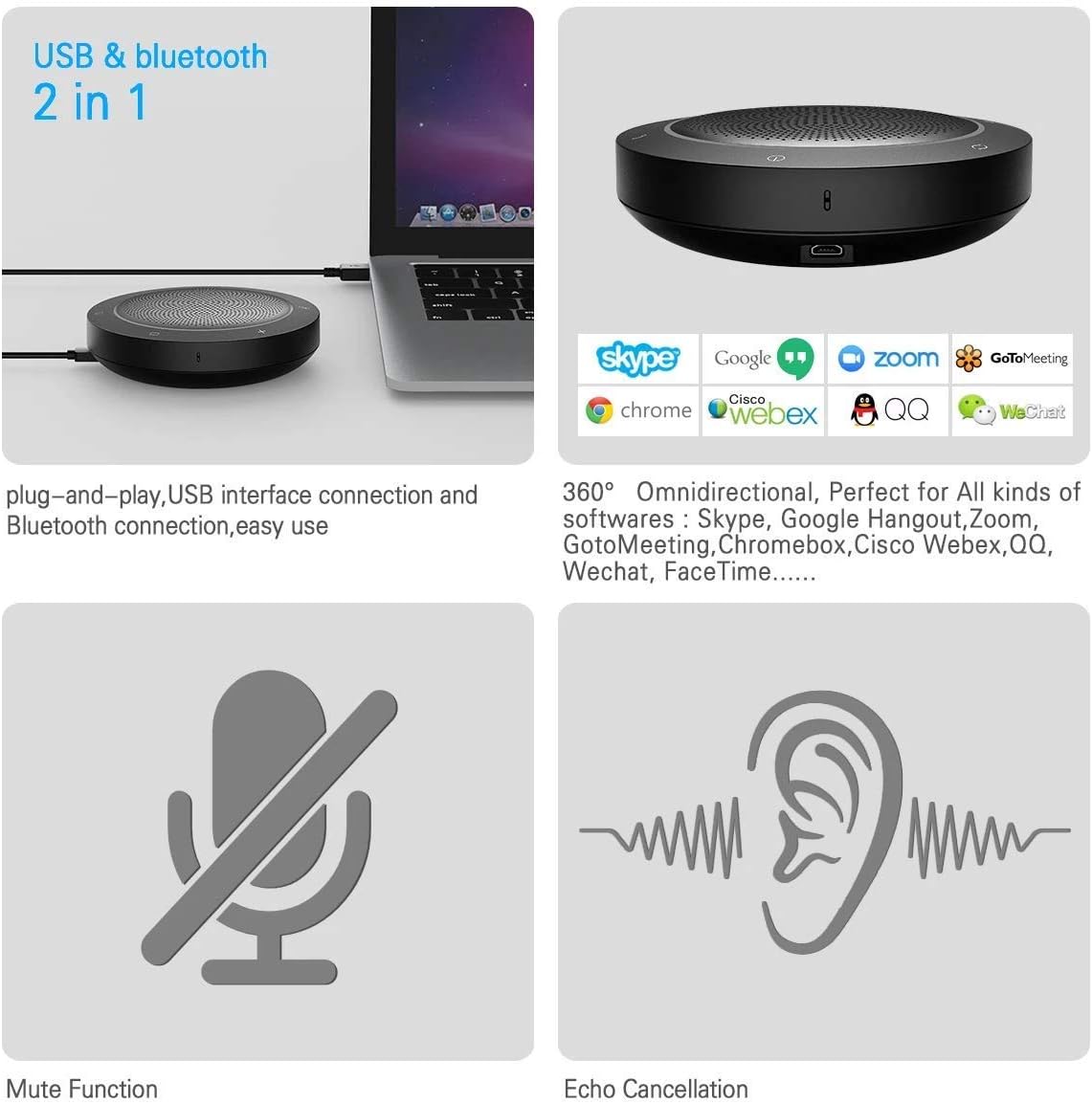 - Konferenzgespräche über USB- und Bluetooth-Verbindung, Einfache Bedienung: Sie können dieses Gerät über die Bluetooth-Funktion mit Ihrem Smartphone, Tablet, Laptop ... verbinden oder das Gerät über das USB-Kabel direkt an Ihren Computer