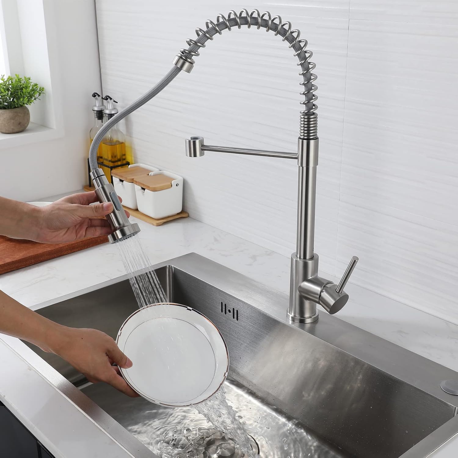 - 🛁【Flexibel Einsetzbar 】 Der Küchenhahn ist ausziehbar und schwenkbar, Küchenarmatur der Griff ist um 360 Grad drehbar, freies Ziehen, bewegt sich reibungslos um das Waschbecken, einfach zu bedienen.