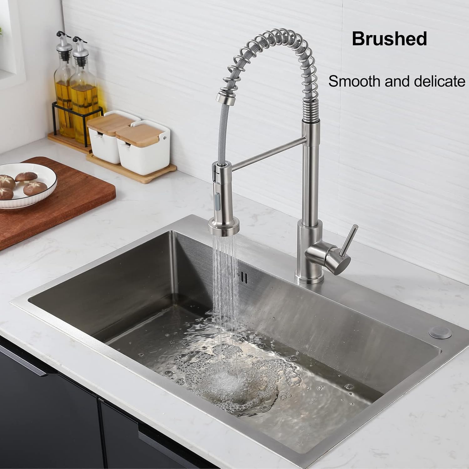 - 🛁【Hohe Qualität】 Dieser Wasserhahnkörper besteht aus Edelstahl 304, fläche gebürstetem Nickel, widersteht Beschädigungen und Korrosion im täglichen Gebrauch.