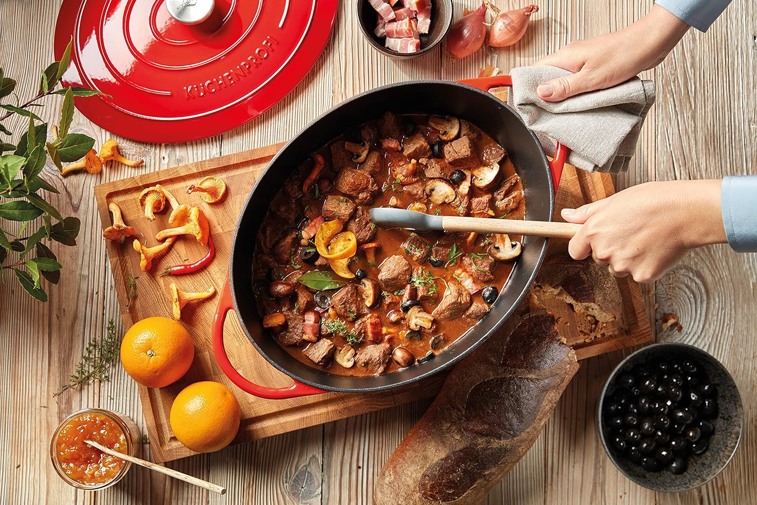 - FÜR ALLE HERDE GEEIGNET: Das Küchenprofi Gusseisen Provence Kochgeschirr ist für Induktionsherde sowie für alle anderen Herdarten geeignet und bis 250°C backofenfest. Erst Braten, dann Schmoren und zuletzt Überbacken? - Kein Problem!