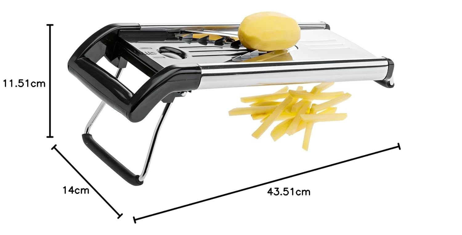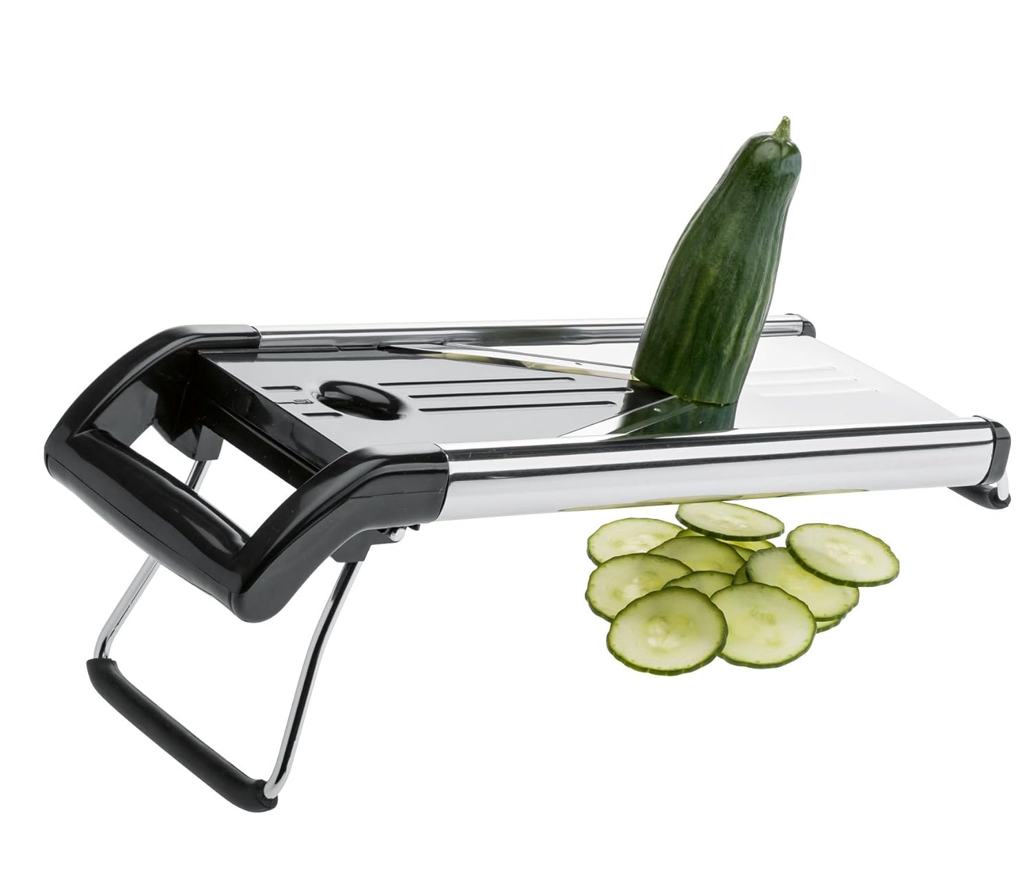 - HOCHWERTIGES MATERIAL. Der Gemüse Hobel steht sicher auf rutschfesten Füssen, die scharfen Klingen sind aus rostfreiem Edelstahl gefertigt.